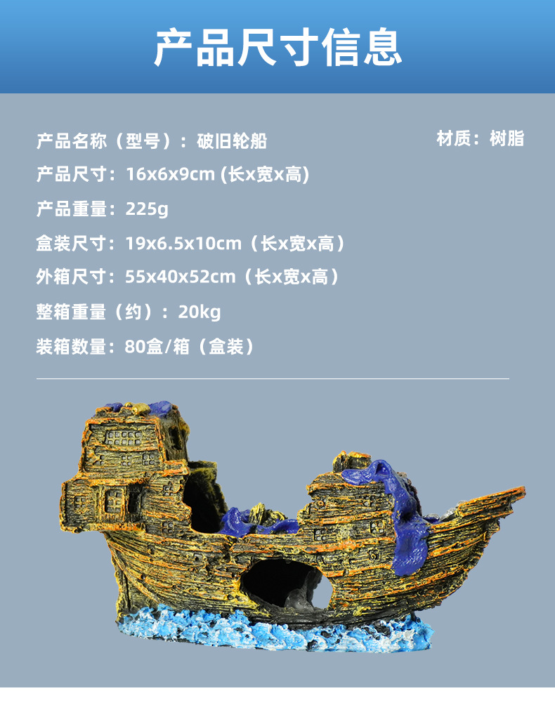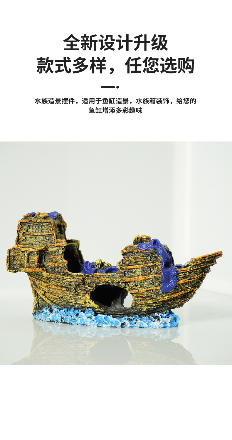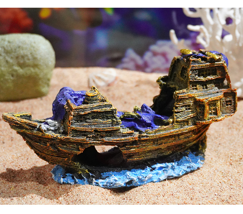 수족관 장식은 오래된 어항 조경 장식품을 만듭니다. 해적선 침몰 한 어선 난파선 시뮬레이션 선박 대피소