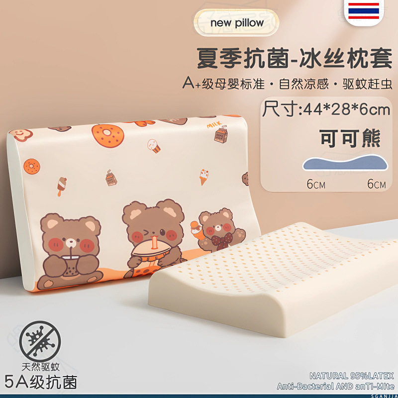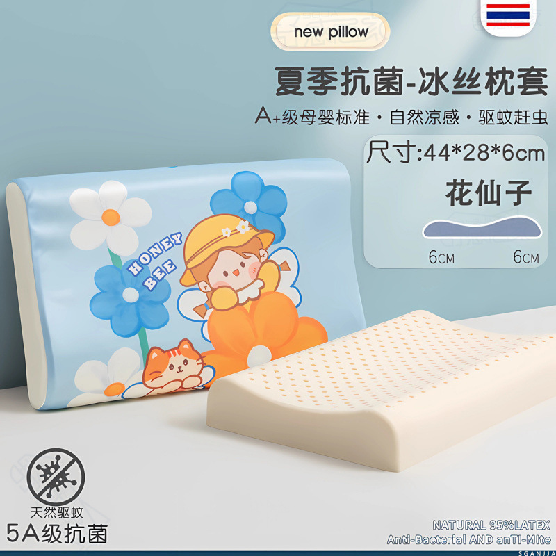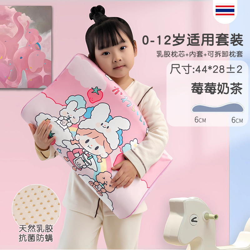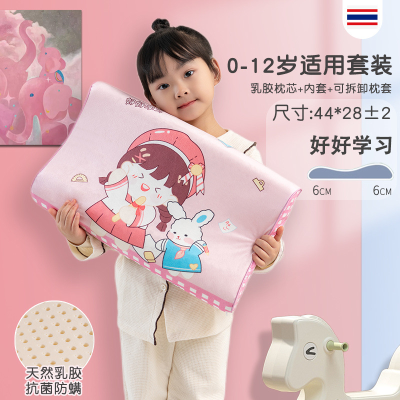 어린이용 라텍스 베개, 태국산 고무, 경추 보호, 수면 보조, 아기 전용, 사계절 사용 가능, 항균, 편안함, 통기성스토어 가기