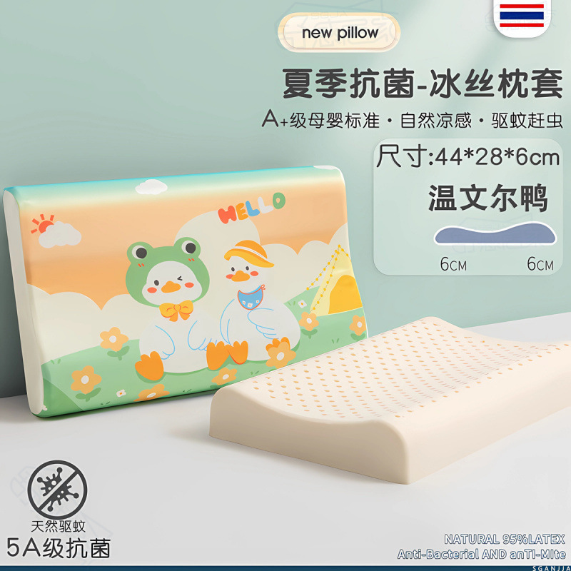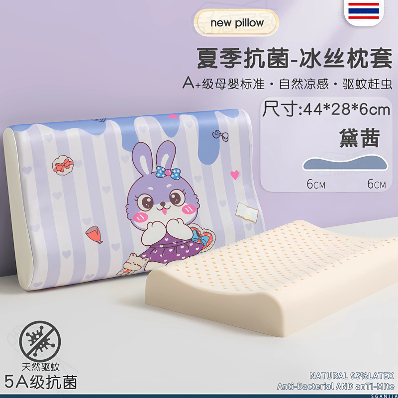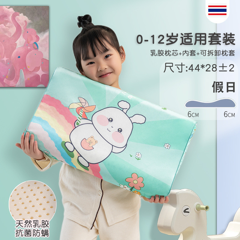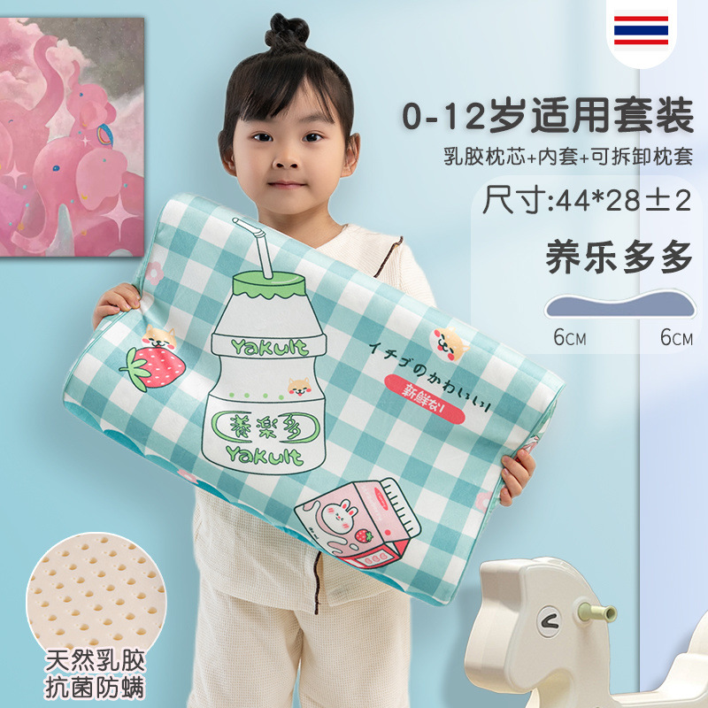 어린이용 라텍스 베개, 태국산 고무, 경추 보호, 수면 보조, 아기 전용, 사계절 사용 가능, 항균, 편안함, 통기성