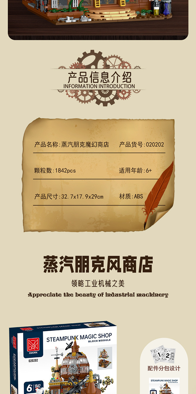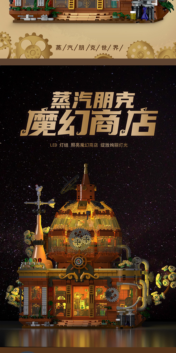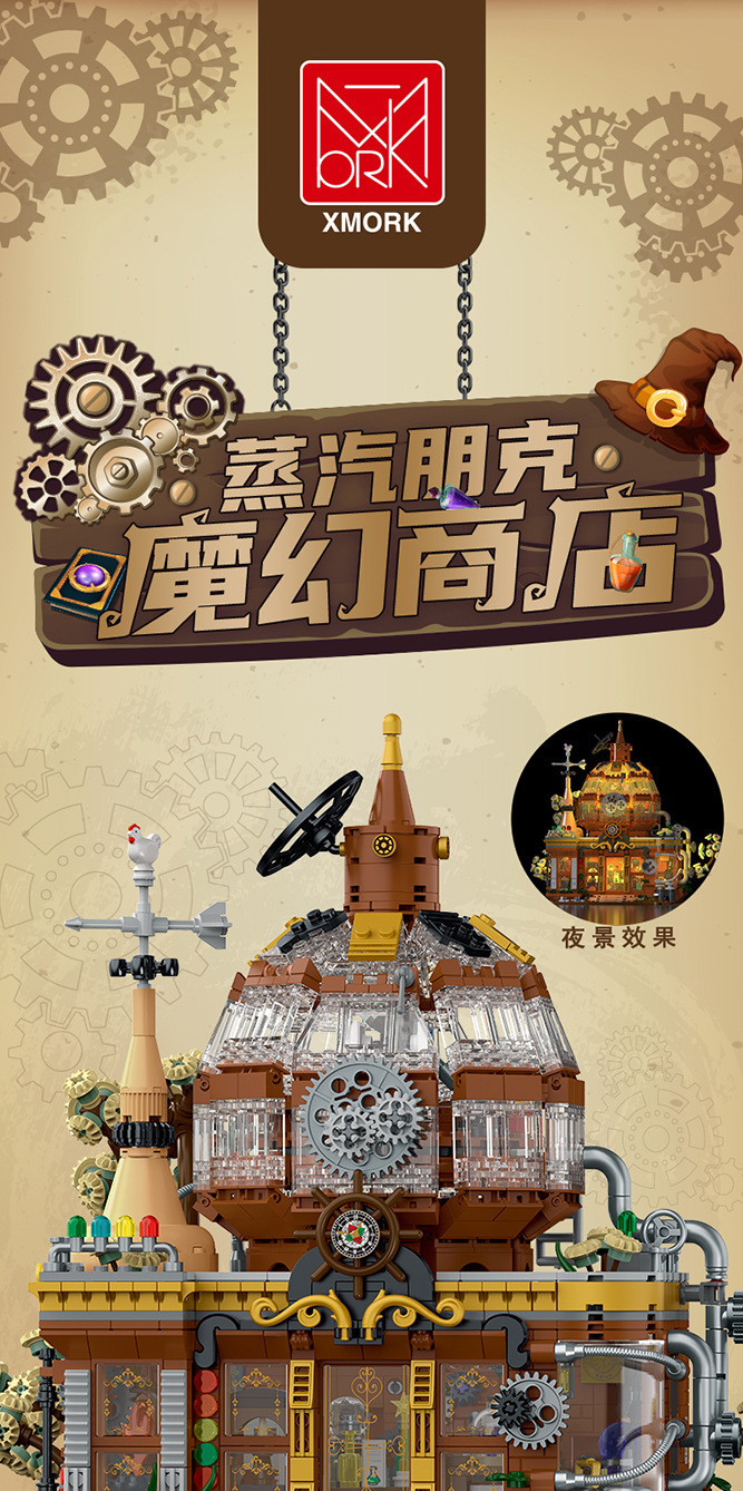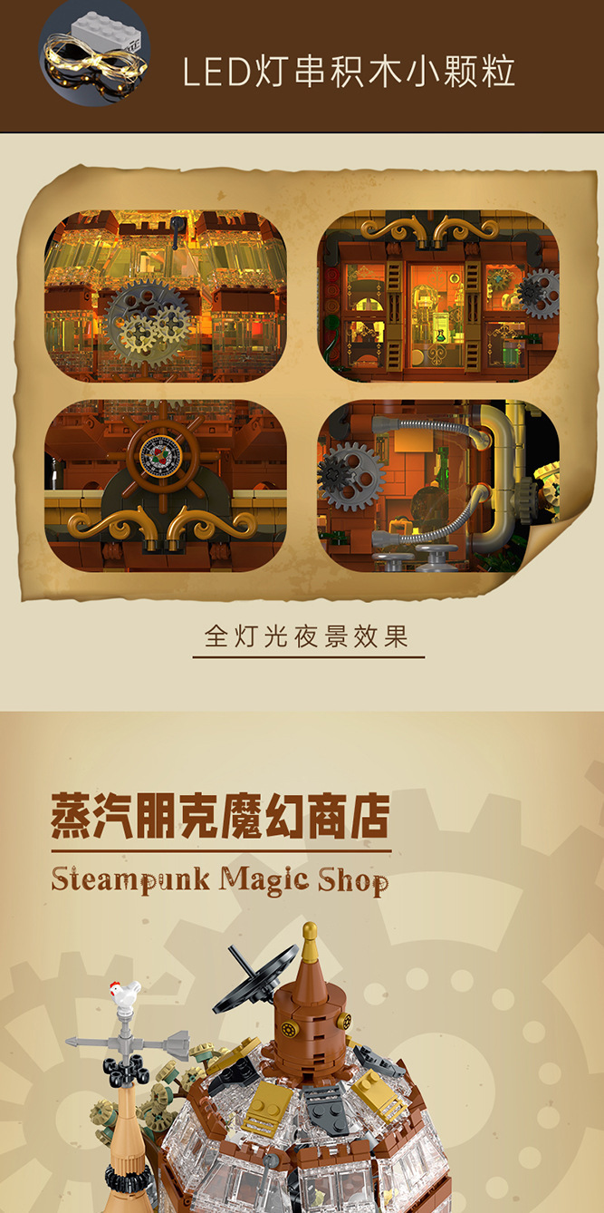 모델 020202 가벼운 회전 복고풍 창조적 인 조립 장난감 국경 도매 스팀 펑크 매직 스토어
