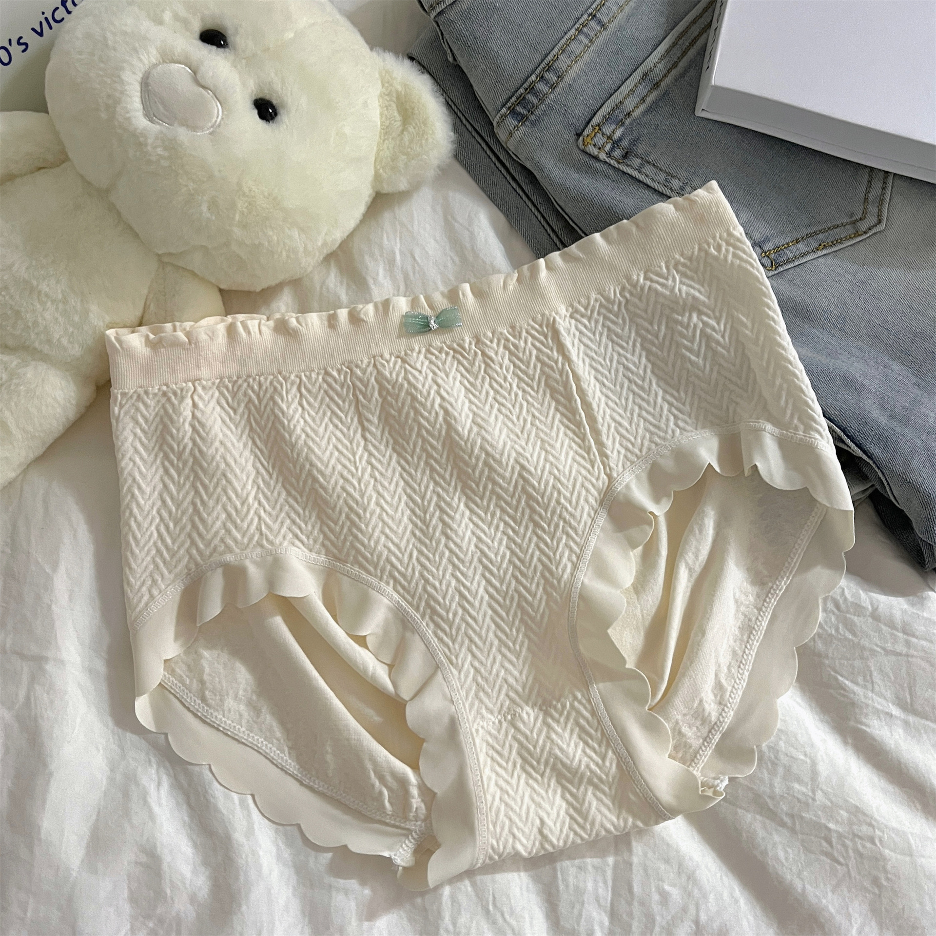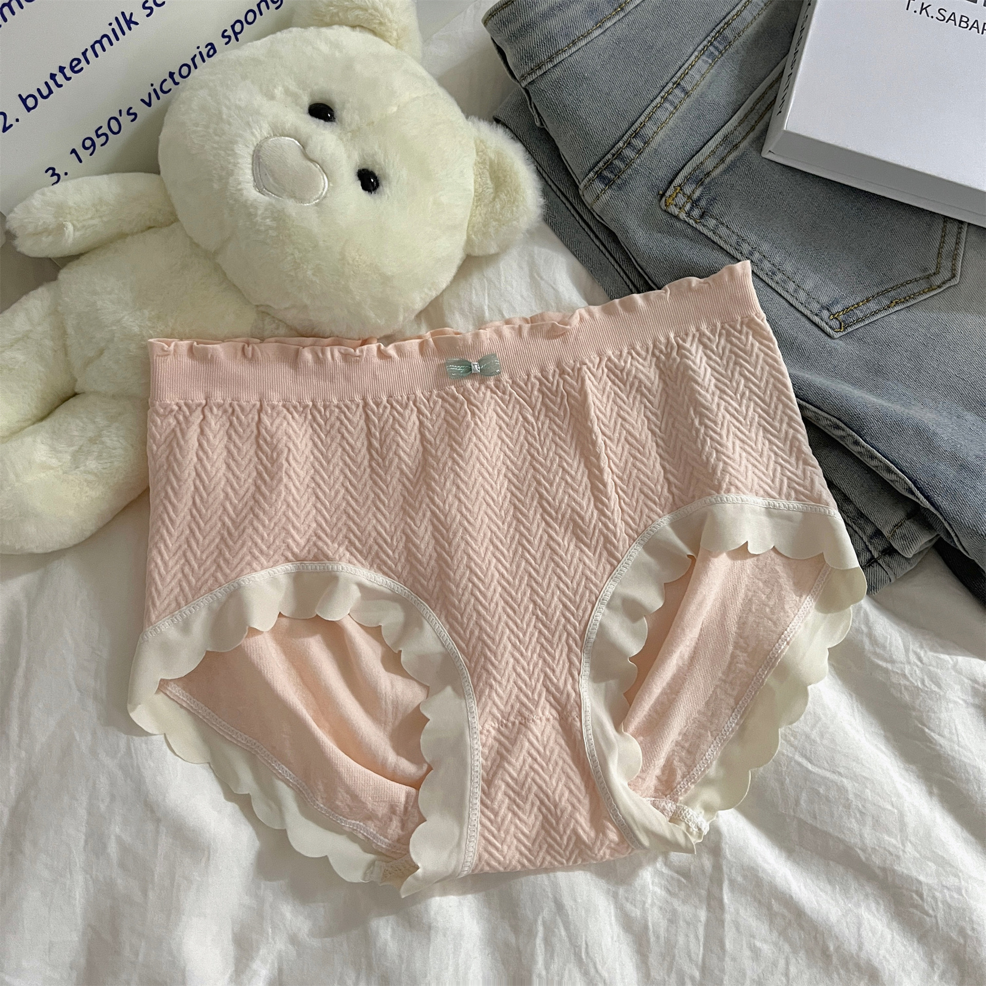 속옷 여성의 중간 허리 엉덩이 원활한 피부 친화적 인 부드러운 소녀 학생 순면 크로트 항균 일본 달콤한 여행스토어 가기