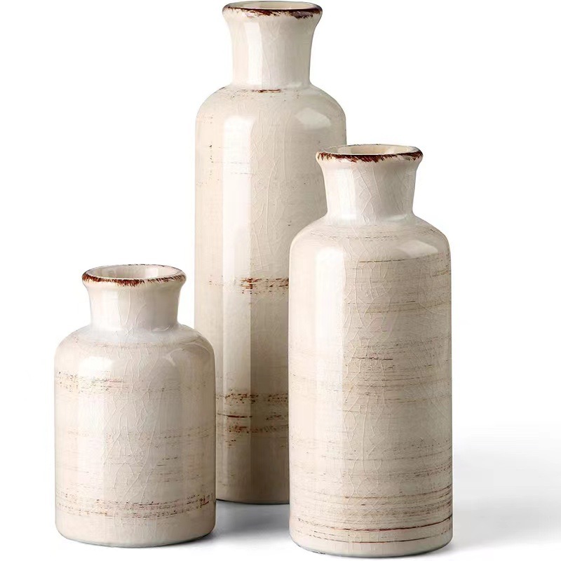 간단한 레트로 얼음 균열 고온 3 피스 세트 공예 세라믹 꽃병 장식 TV 캐비닛 샘플 룸 장식스토어 가기