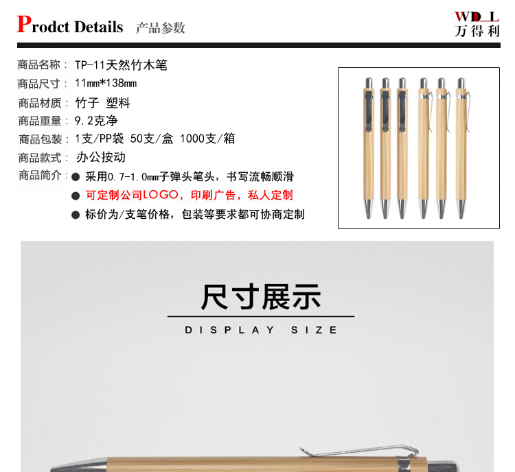 친환경 2단 광택 대나무 펜, 금속 펜 클립, 곤충 및 곰팡이 방지 대나무 및 목재 볼펜, 도매 광고 펜