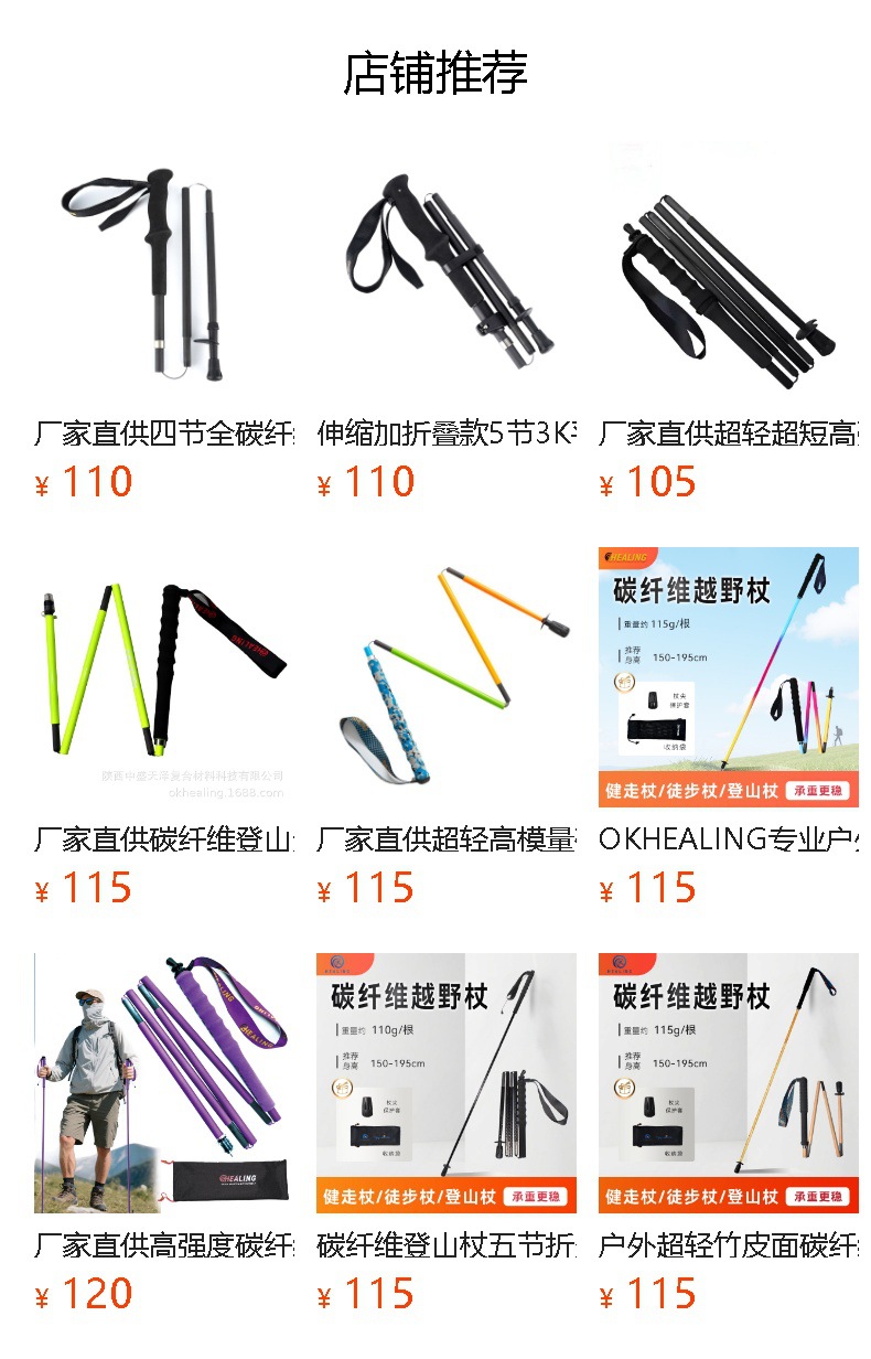 陕西中盛天泽超轻3k平纹亮光碳纤维登山杖越野杖,可折叠携带方便,三款长度(110cm, 120cm,130cm)可选,热销推荐;支持贴标OEM订制