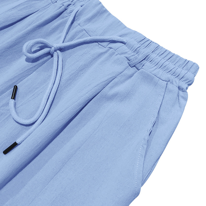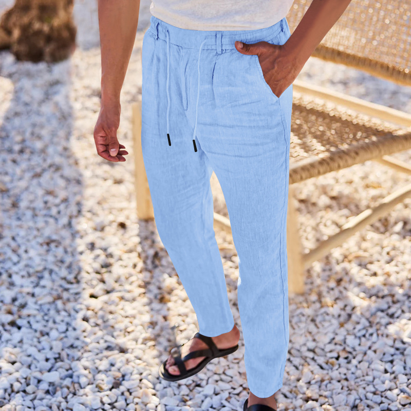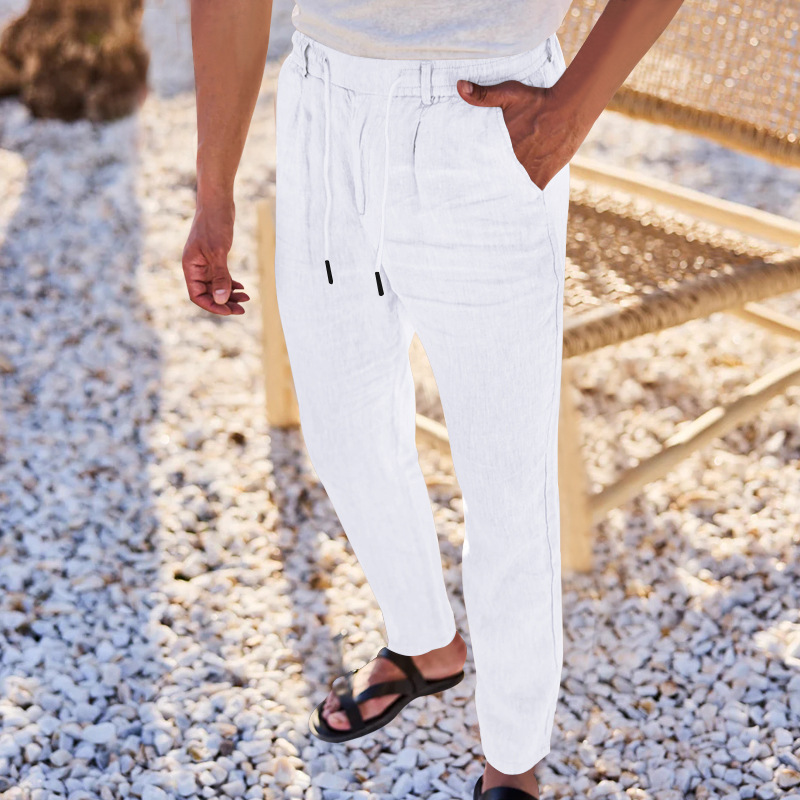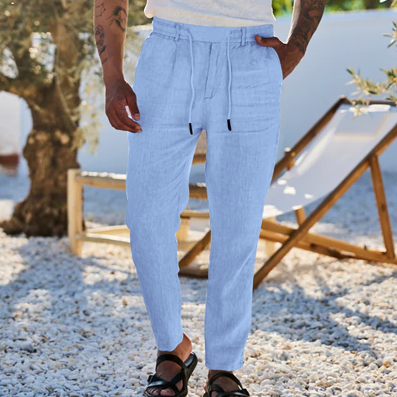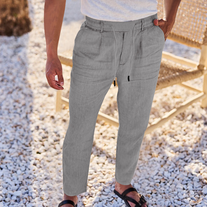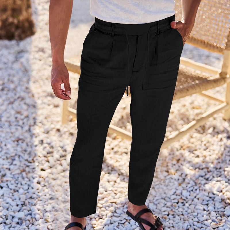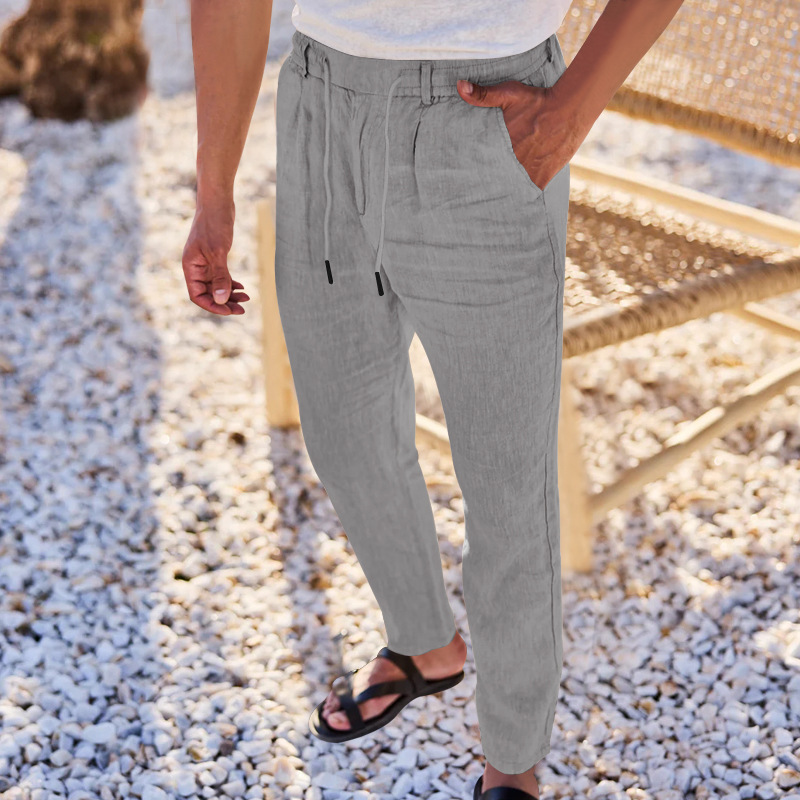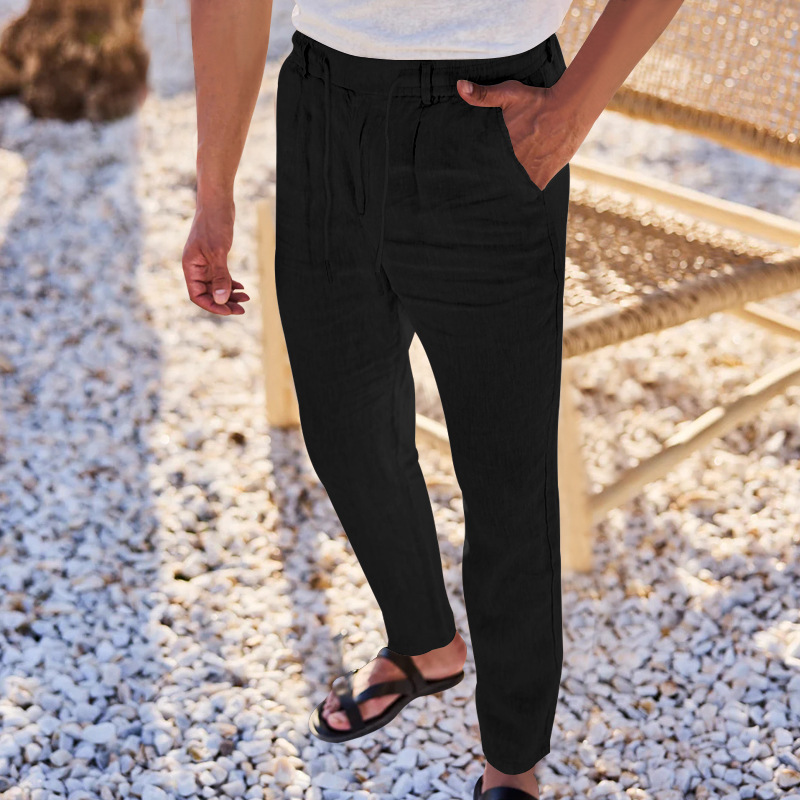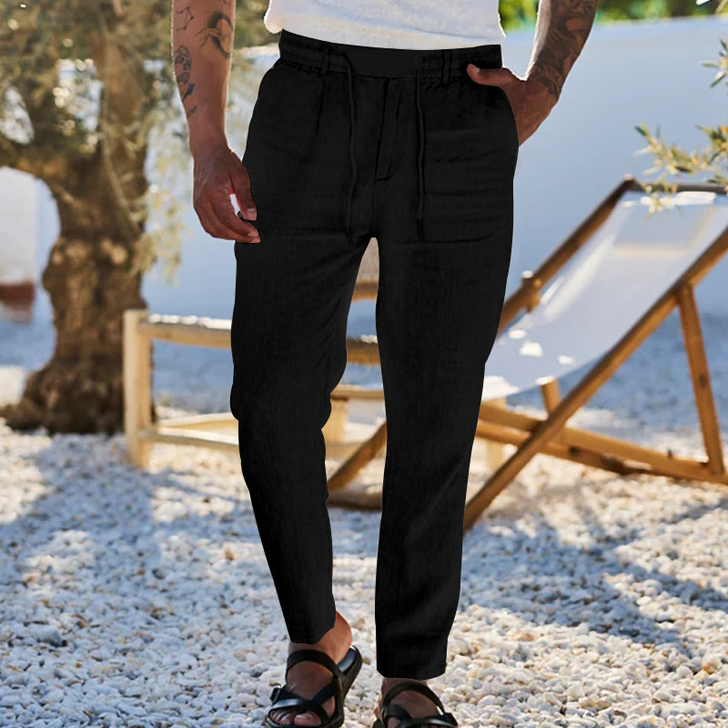 2024 국경 유럽 및 미국 아마존 새면 및 린넨 느슨한 바지 남성용 스트레이트 솔리드 컬러 캐주얼 현악기 바지 남성스토어 가기
