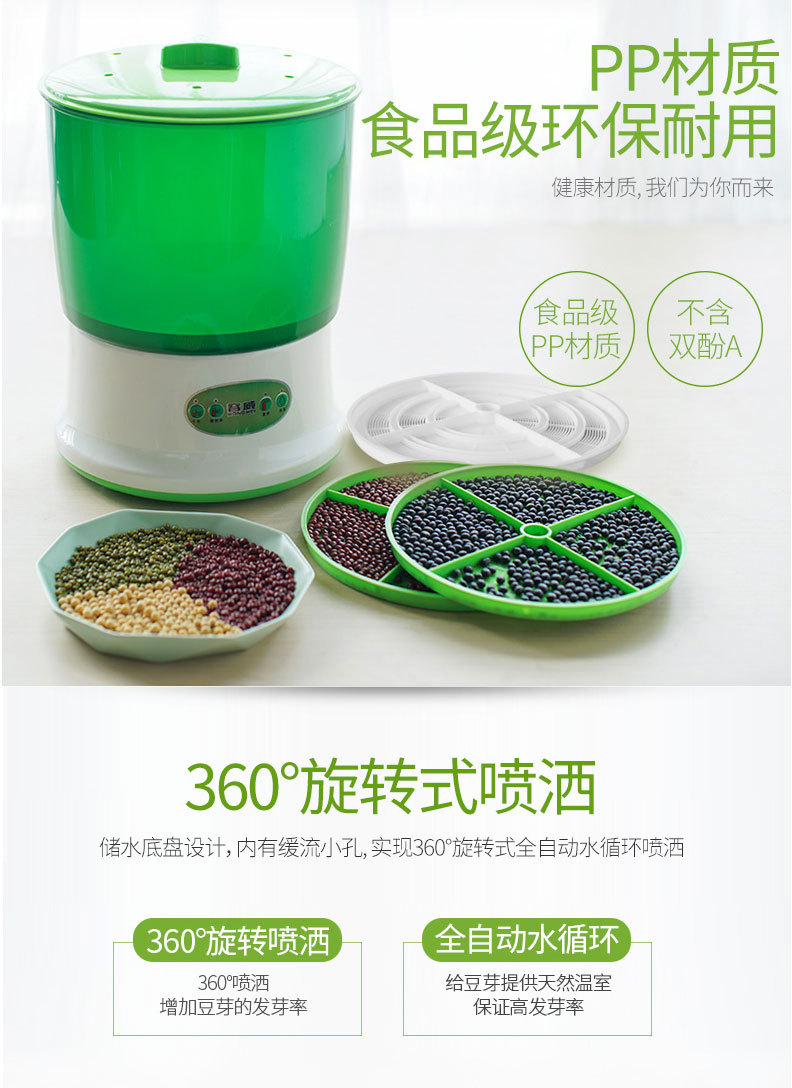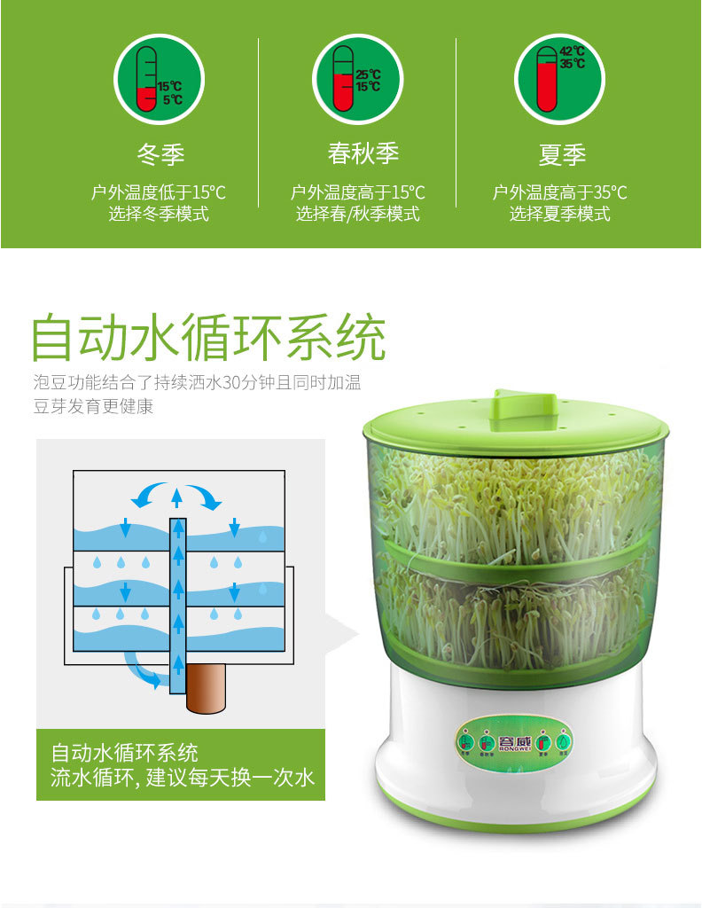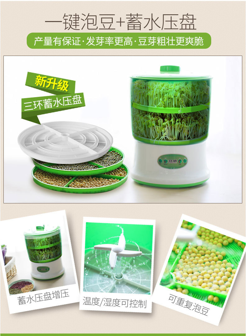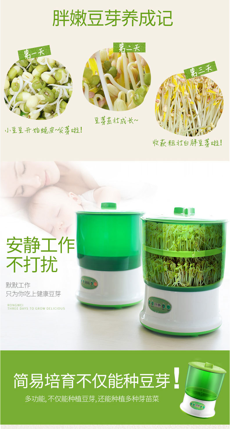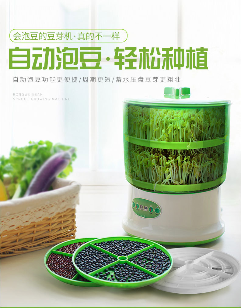 Rongwei 콩 새싹 기계 가정용 자동 지능형 다기능 발아 콩 분지 아티팩트 버킷 수제 그린 콩 새싹 항아리