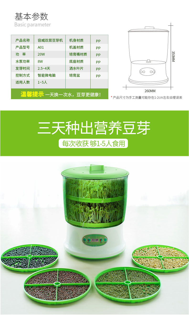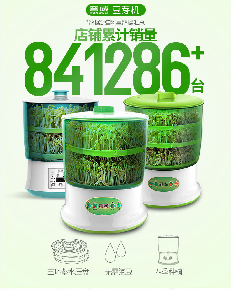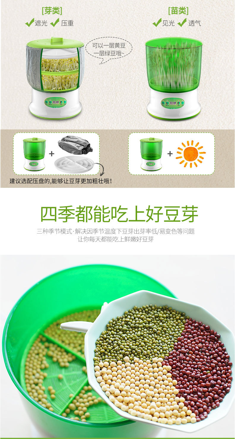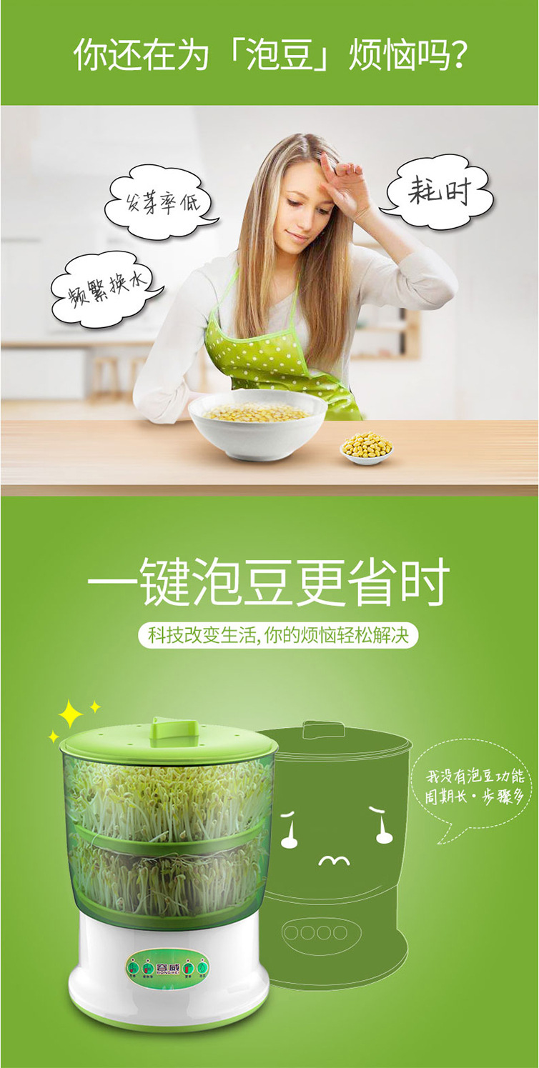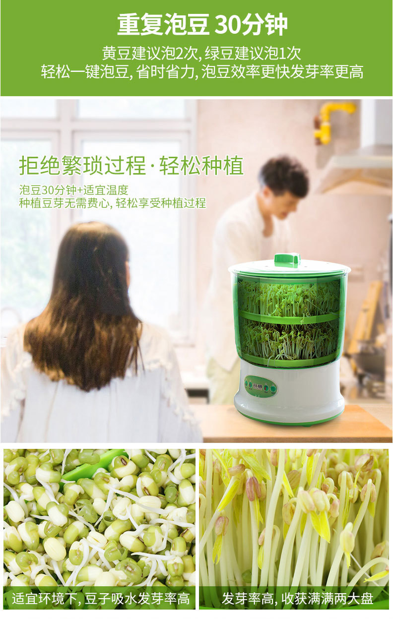 Rongwei 콩 새싹 기계 가정용 자동 지능형 다기능 발아 콩 분지 아티팩트 버킷 수제 그린 콩 새싹 항아리