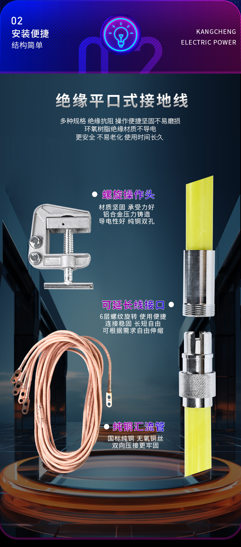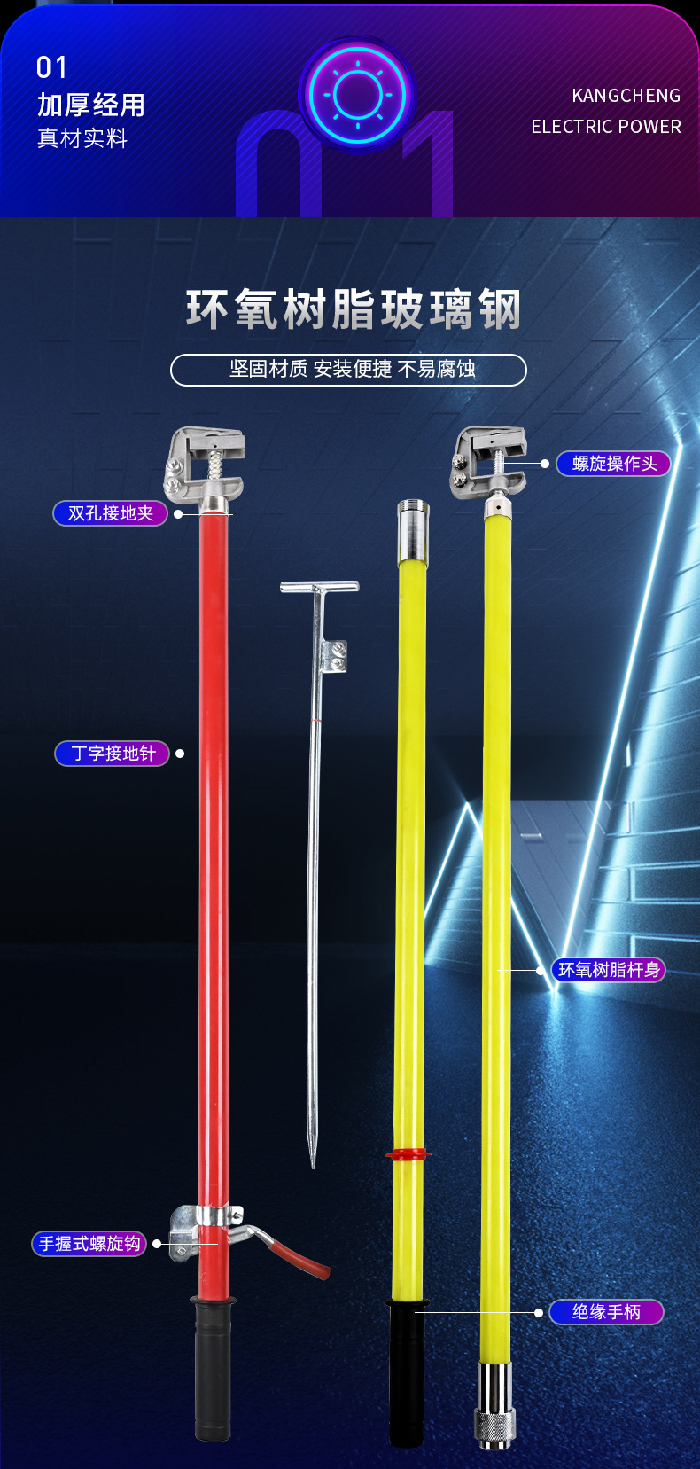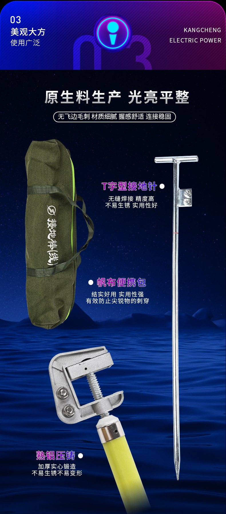 • 220KV25 정사각형 3*5+ 10m 2개 섹션 3m 플랫 입 스틱 접지 카드 홀더 포함