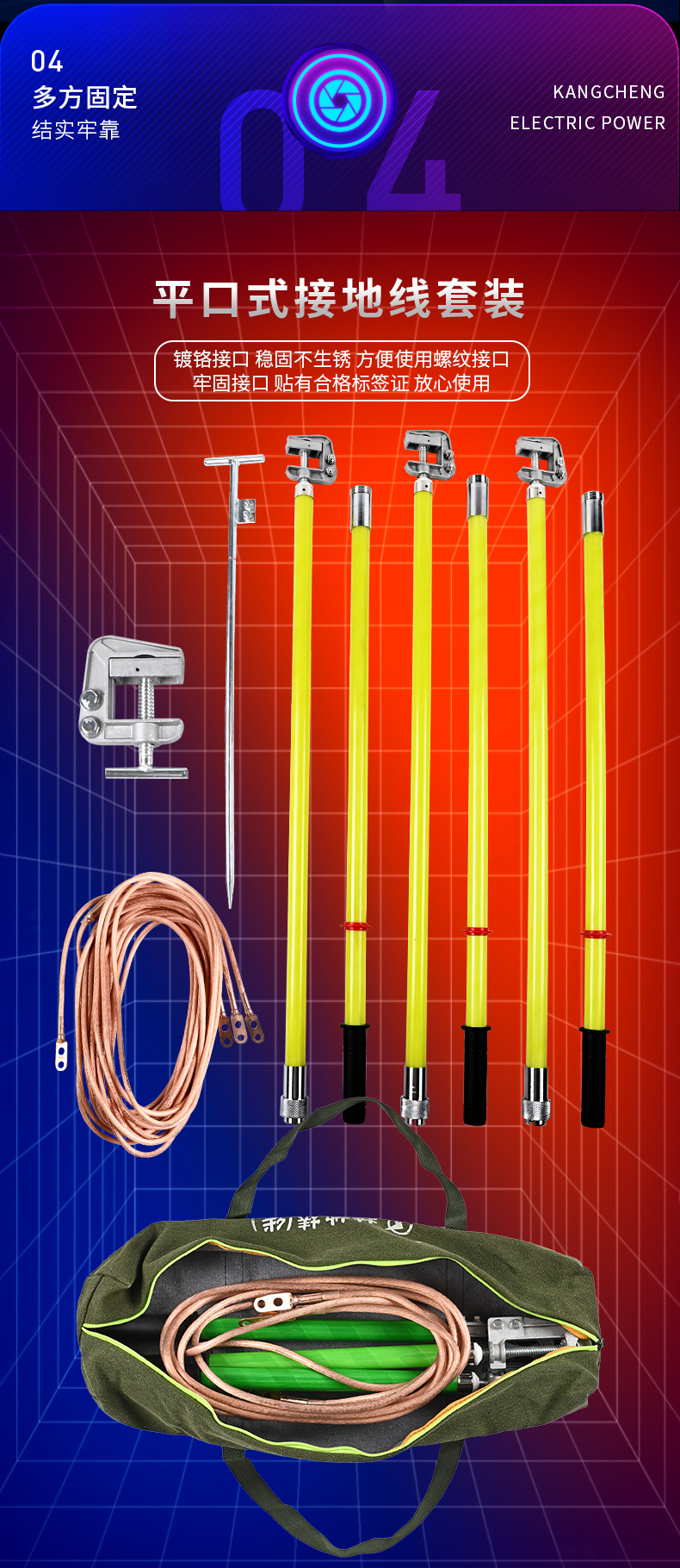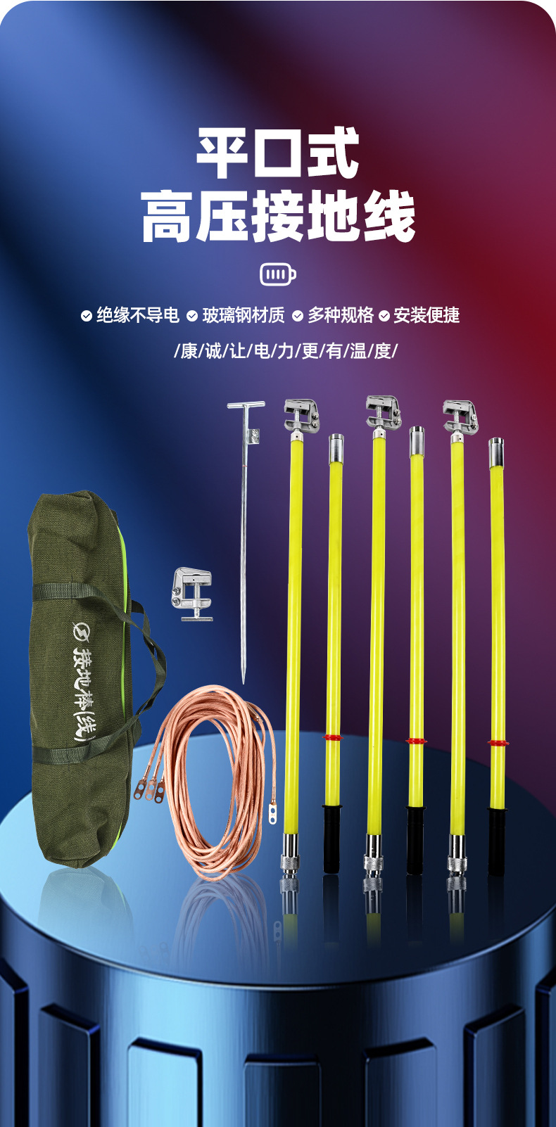 공장 전원 공급 장치 휴대용 단락 접지로드 전원 감지 0.4KV-500KV 평면 접지선스토어 가기