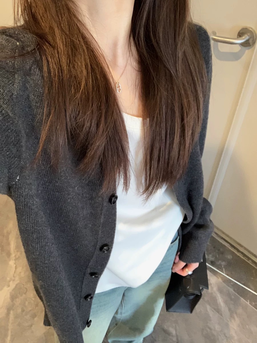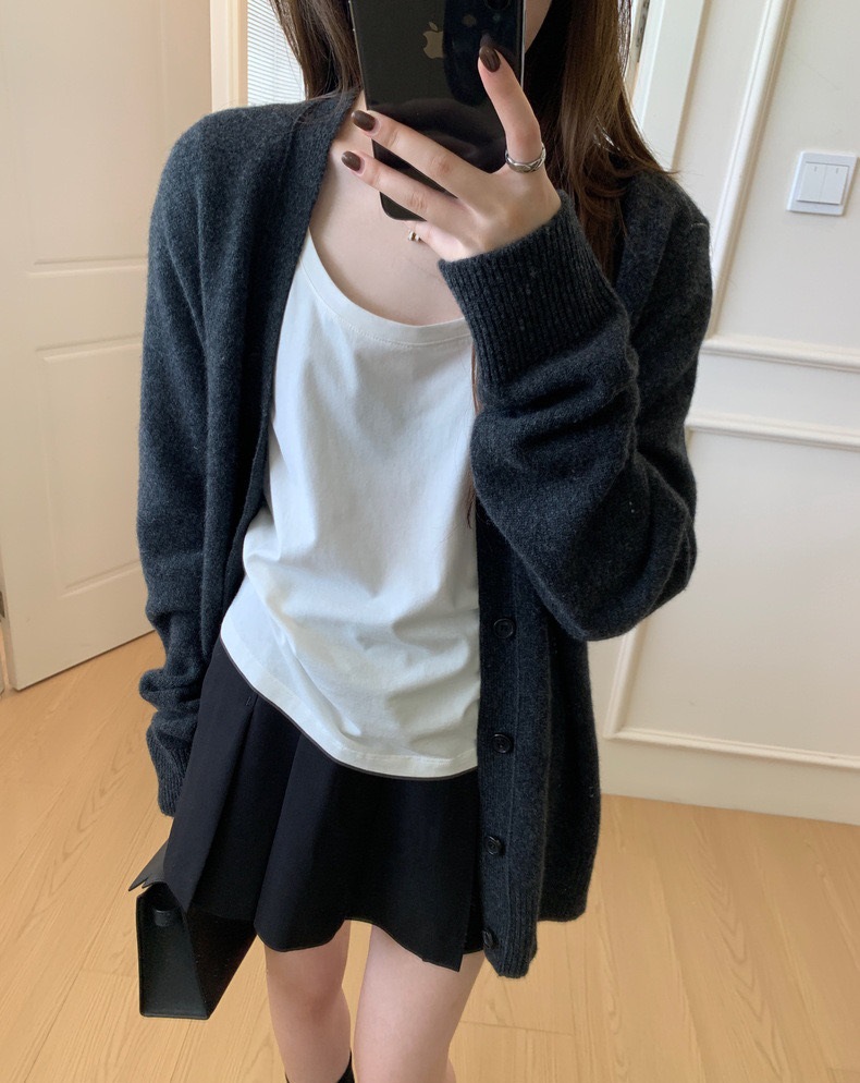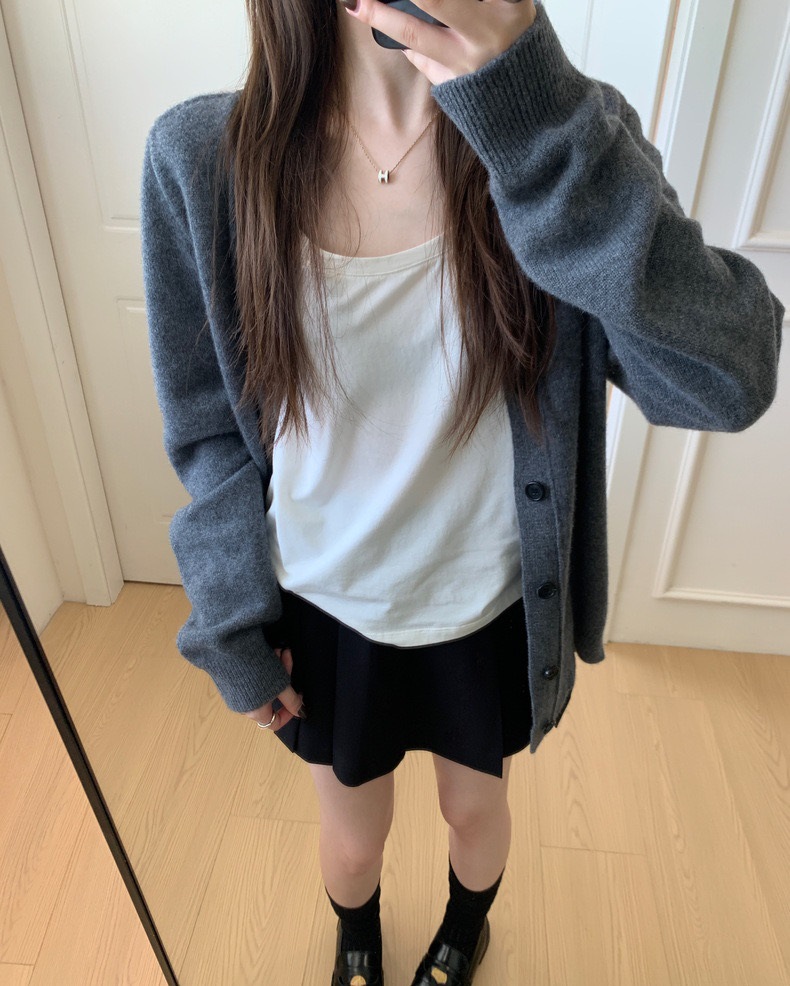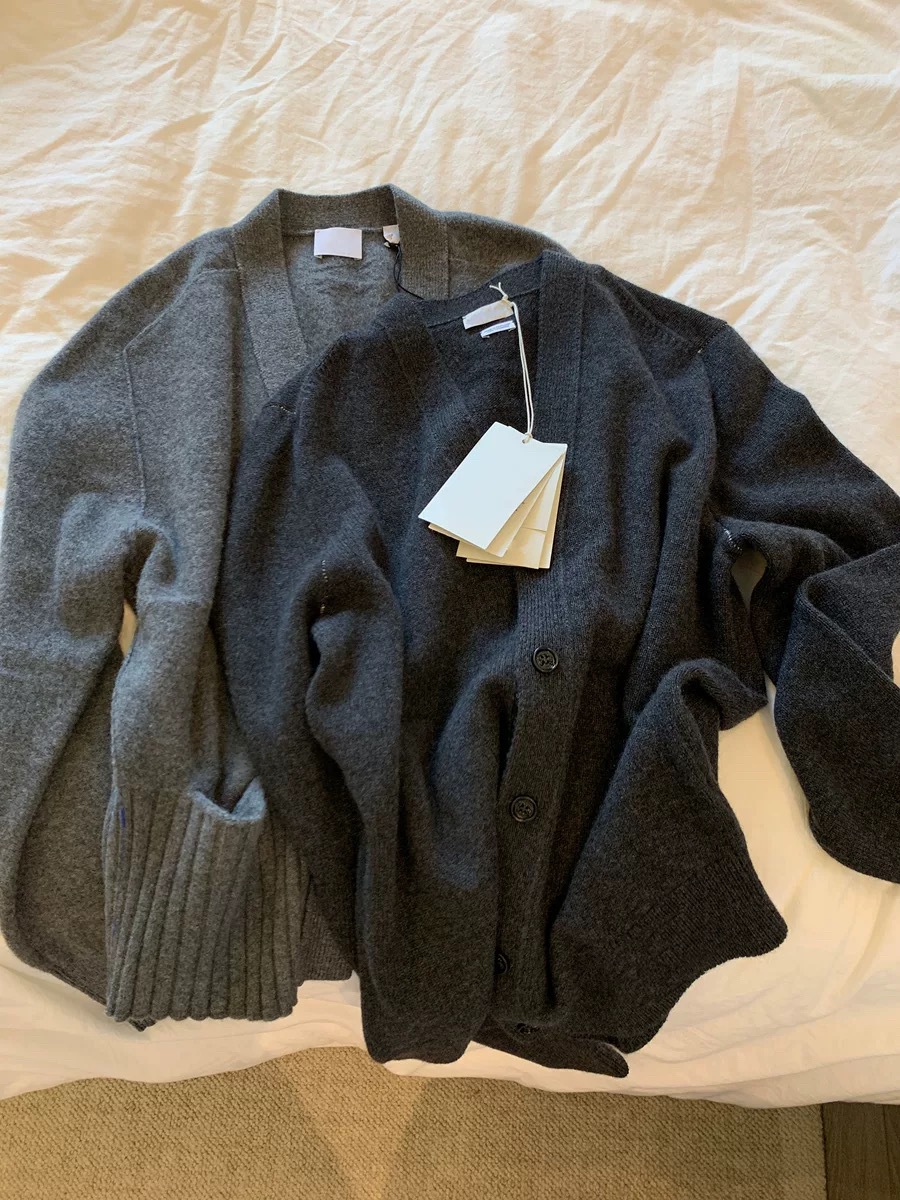 Choouan _ 가을 100% 울 미니멀리스트 대비 인테리어 스티칭 B @ br 클래식 v-neck 카디건을 기대합니다.스토어 가기