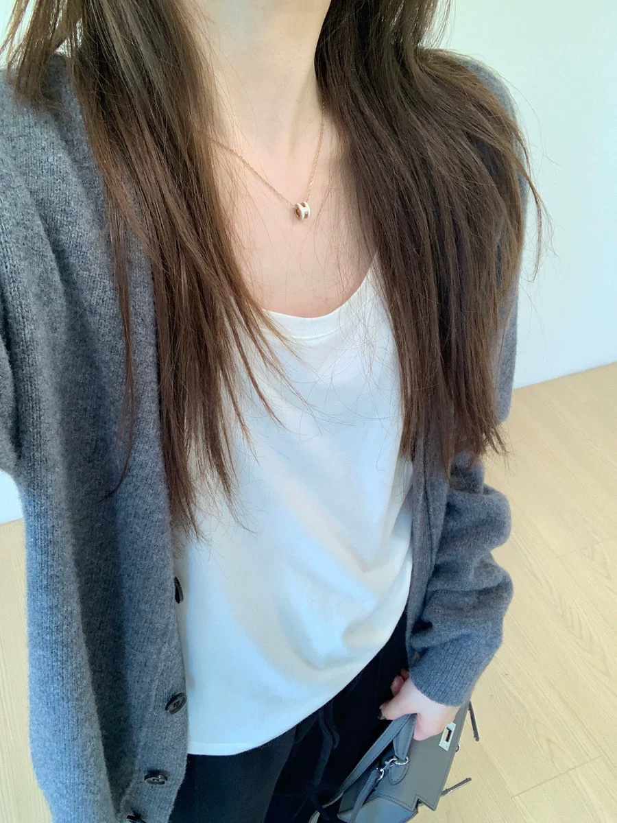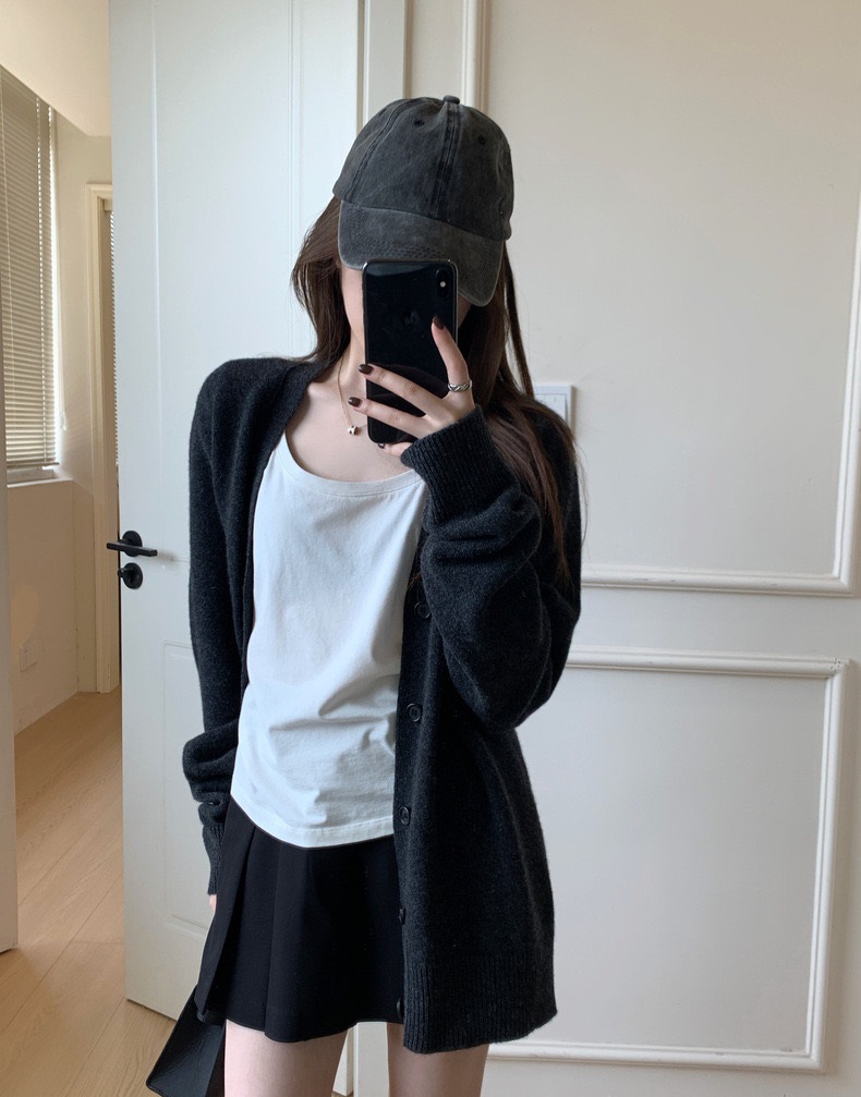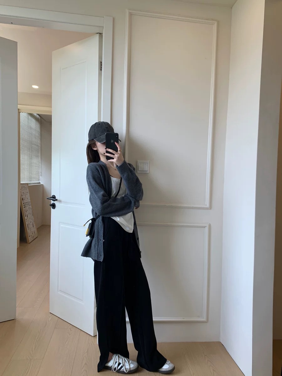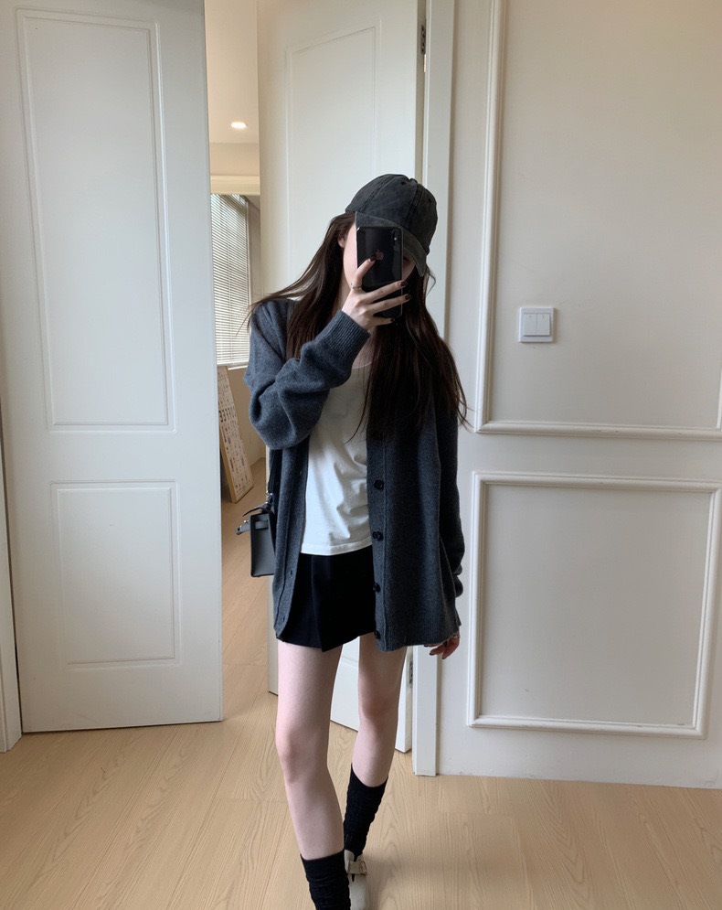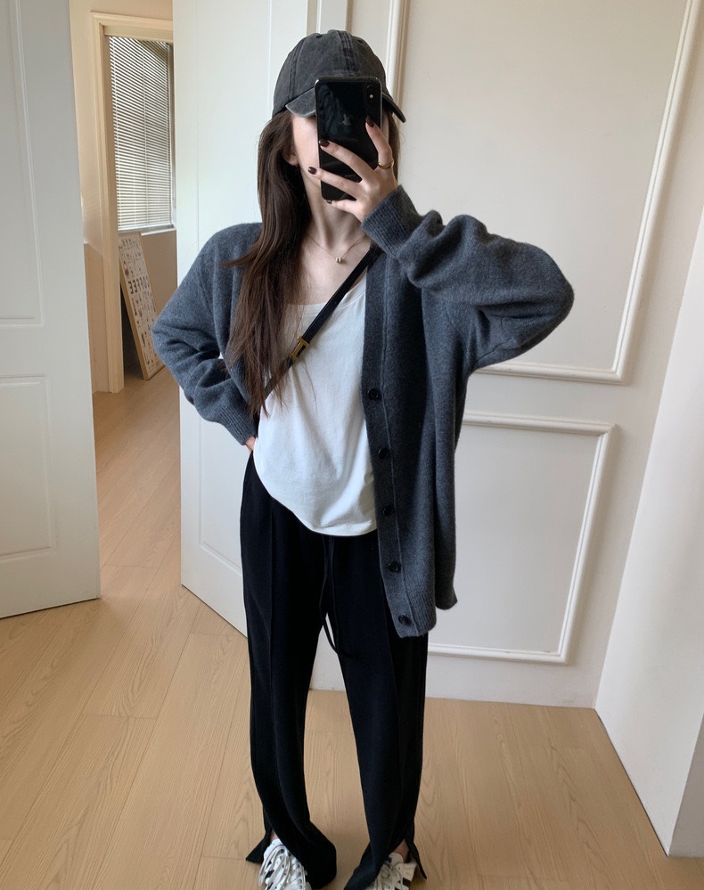 Choouan _ 가을 100% 울 미니멀리스트 대비 인테리어 스티칭 B @ br 클래식 v-neck 카디건을 기대합니다.스토어 가기