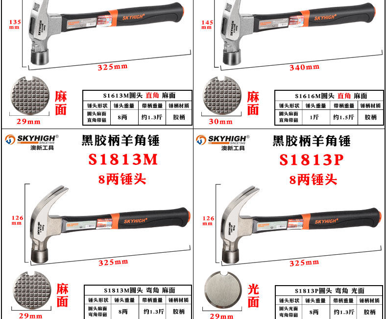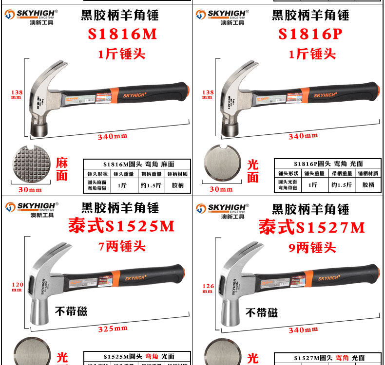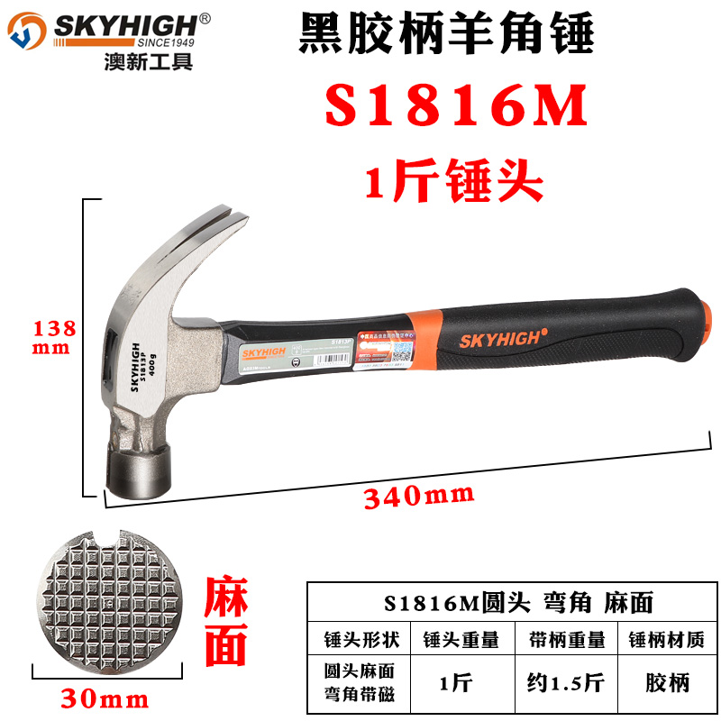 • 아≌*≌ ✧ ✧ S1616M(둥근 머리 0.5kg ) 손잡이가 있는 직각 움푹 패인 표면의 무게는 약 0.75kg ㅏ≌*≌입니다. ✧ ✧