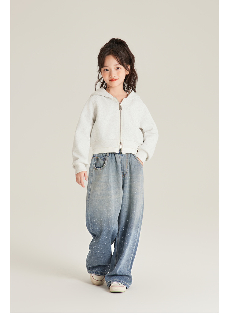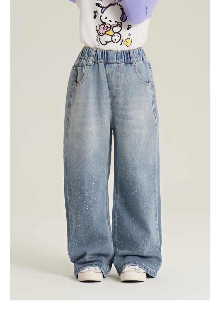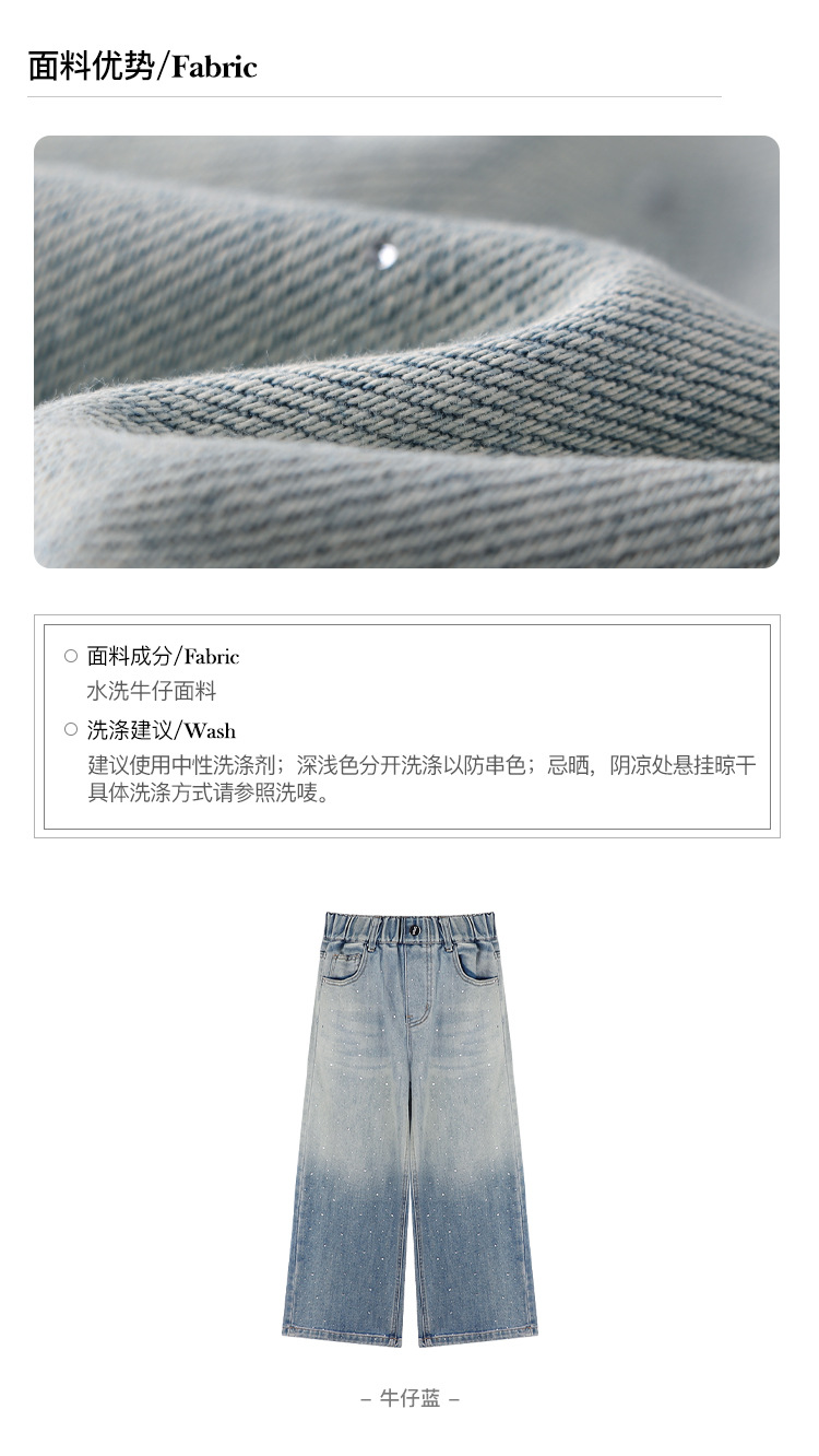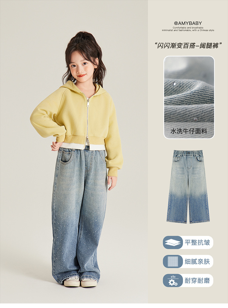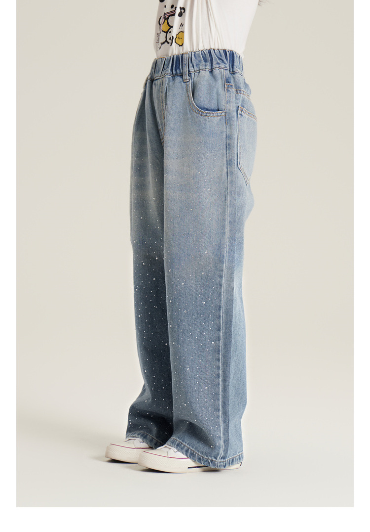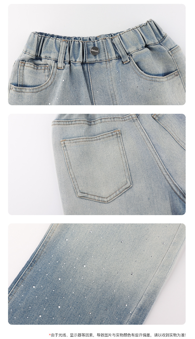 Amybaby 여자 바지 가을 2024 새로운 그라데이션 라인석 캐주얼 올 매치 데님 와이드 레그 팬츠스토어 가기
