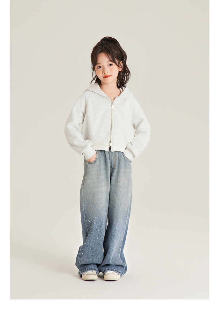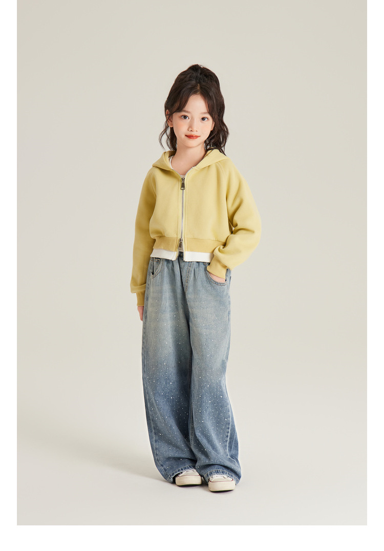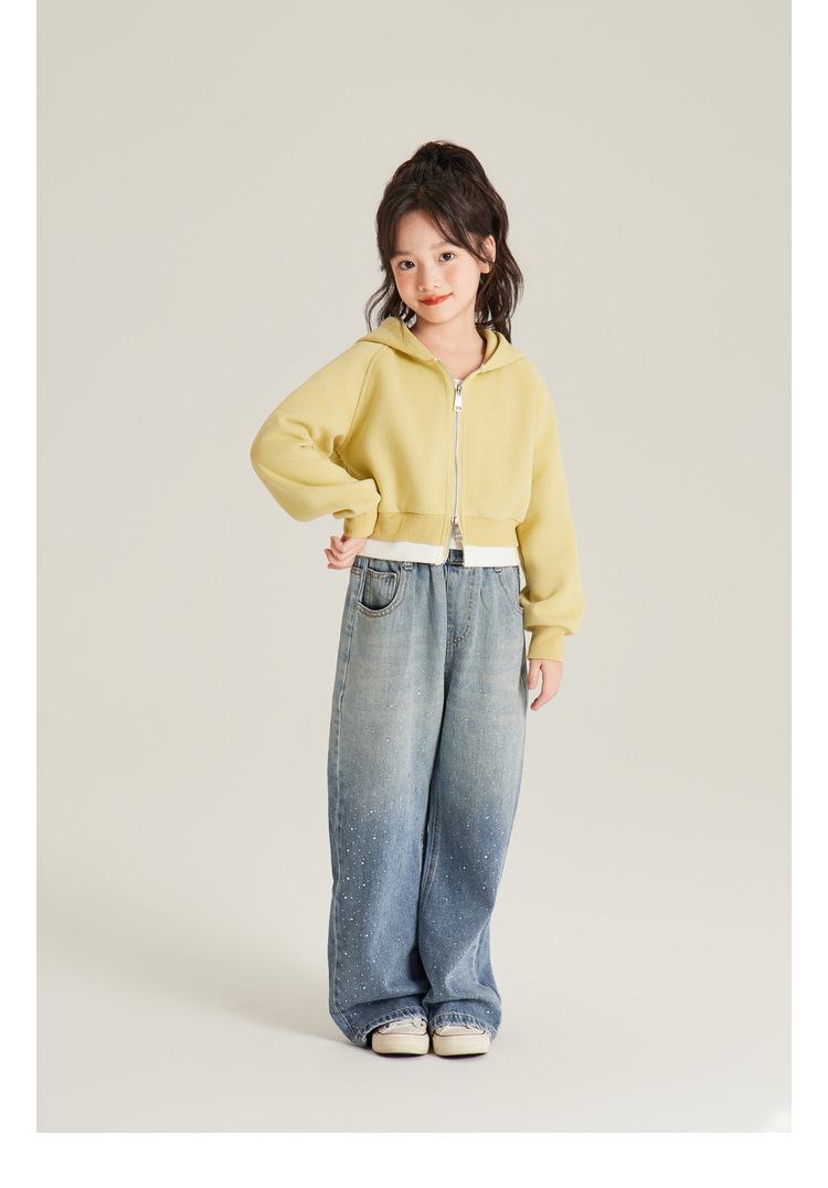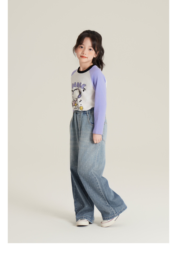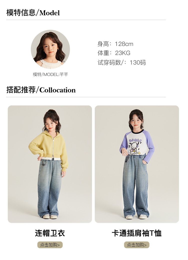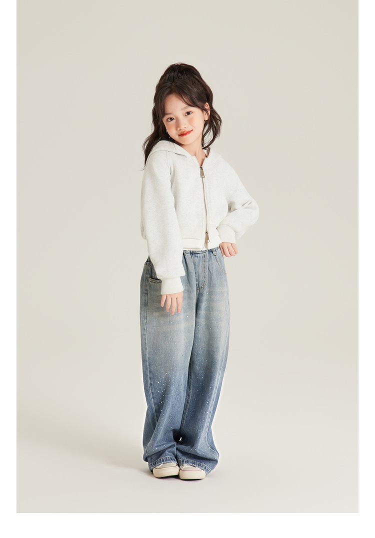 Amybaby 여자 바지 가을 2024 새로운 그라데이션 라인석 캐주얼 올 매치 데님 와이드 레그 팬츠스토어 가기