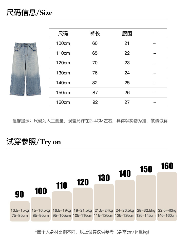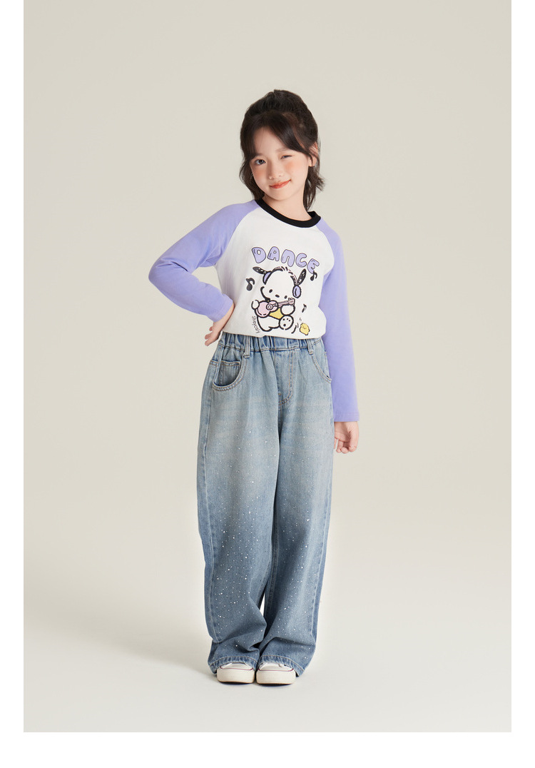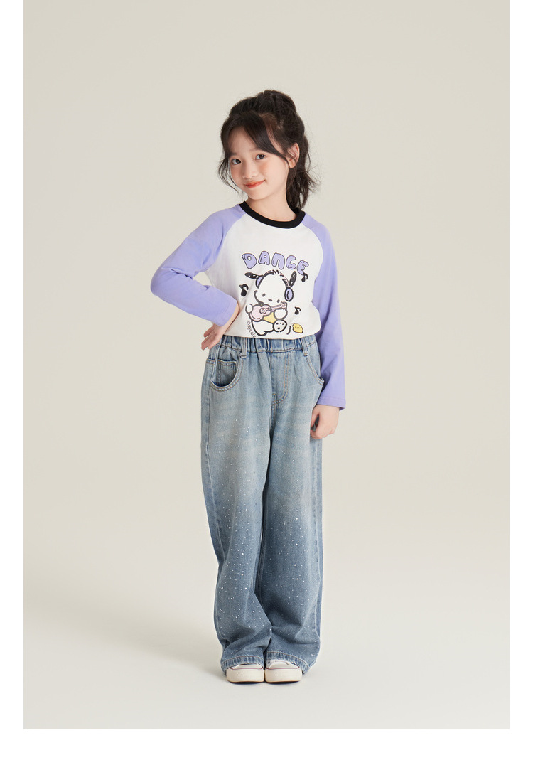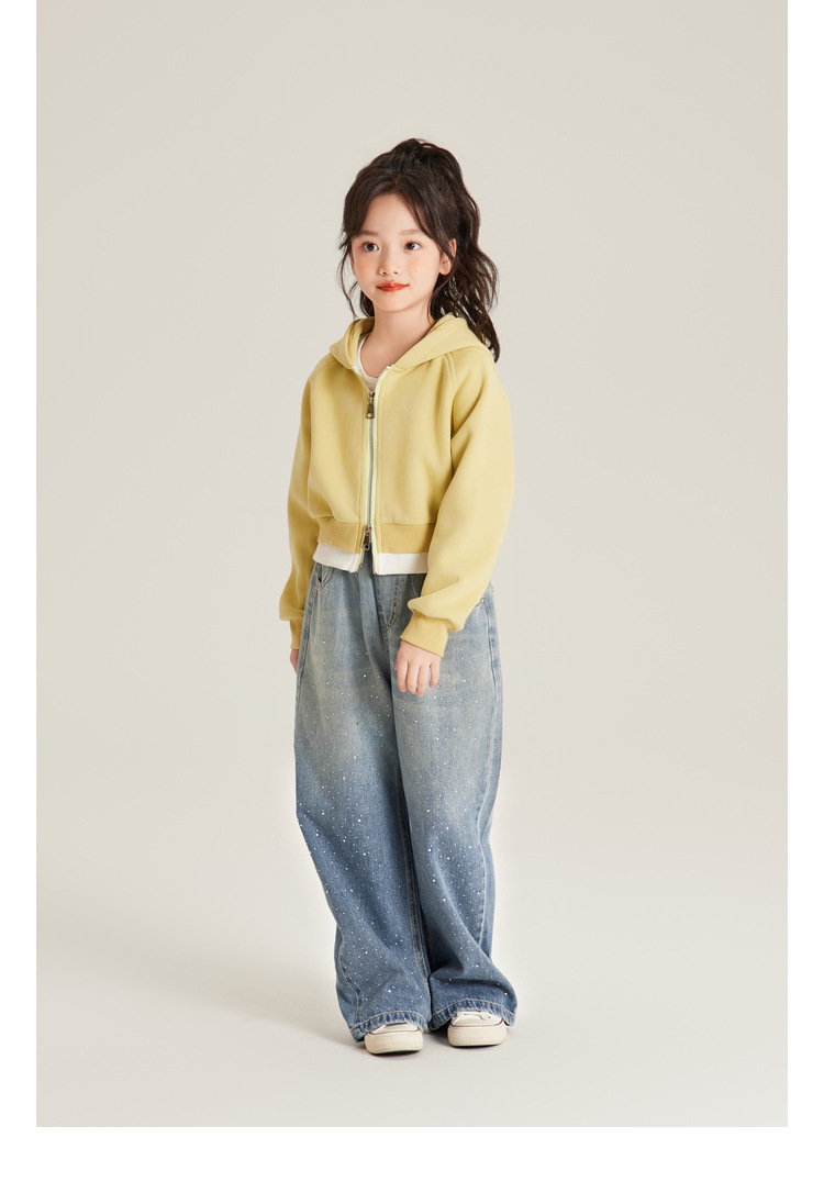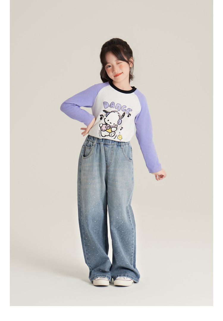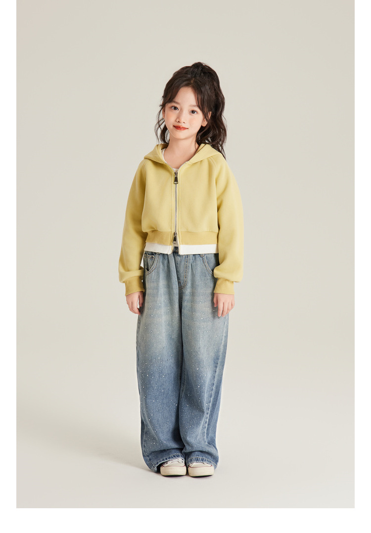 Amybaby 여자 바지 가을 2024 새로운 그라데이션 라인석 캐주얼 올 매치 데님 와이드 레그 팬츠스토어 가기