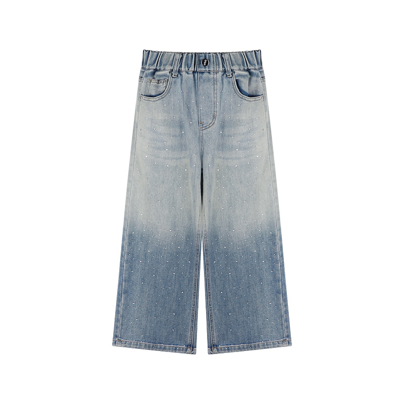 Amybaby 여자 바지 가을 2024 새로운 그라데이션 라인석 캐주얼 올 매치 데님 와이드 레그 팬츠