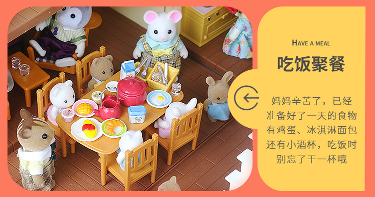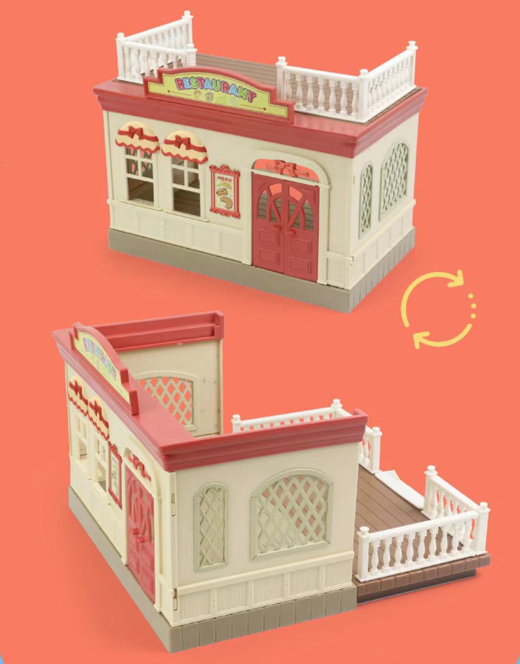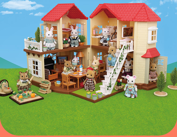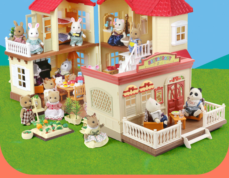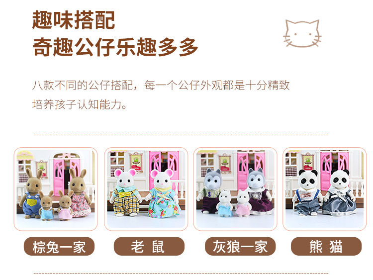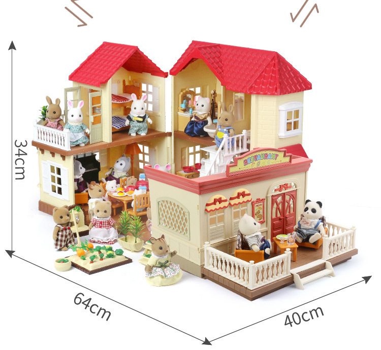 센벨 동물 가족 미니 토끼 인형 집 어린이 놀이 집 시뮬레이션 빌라 세트 소녀 장난감 배치스토어 가기
