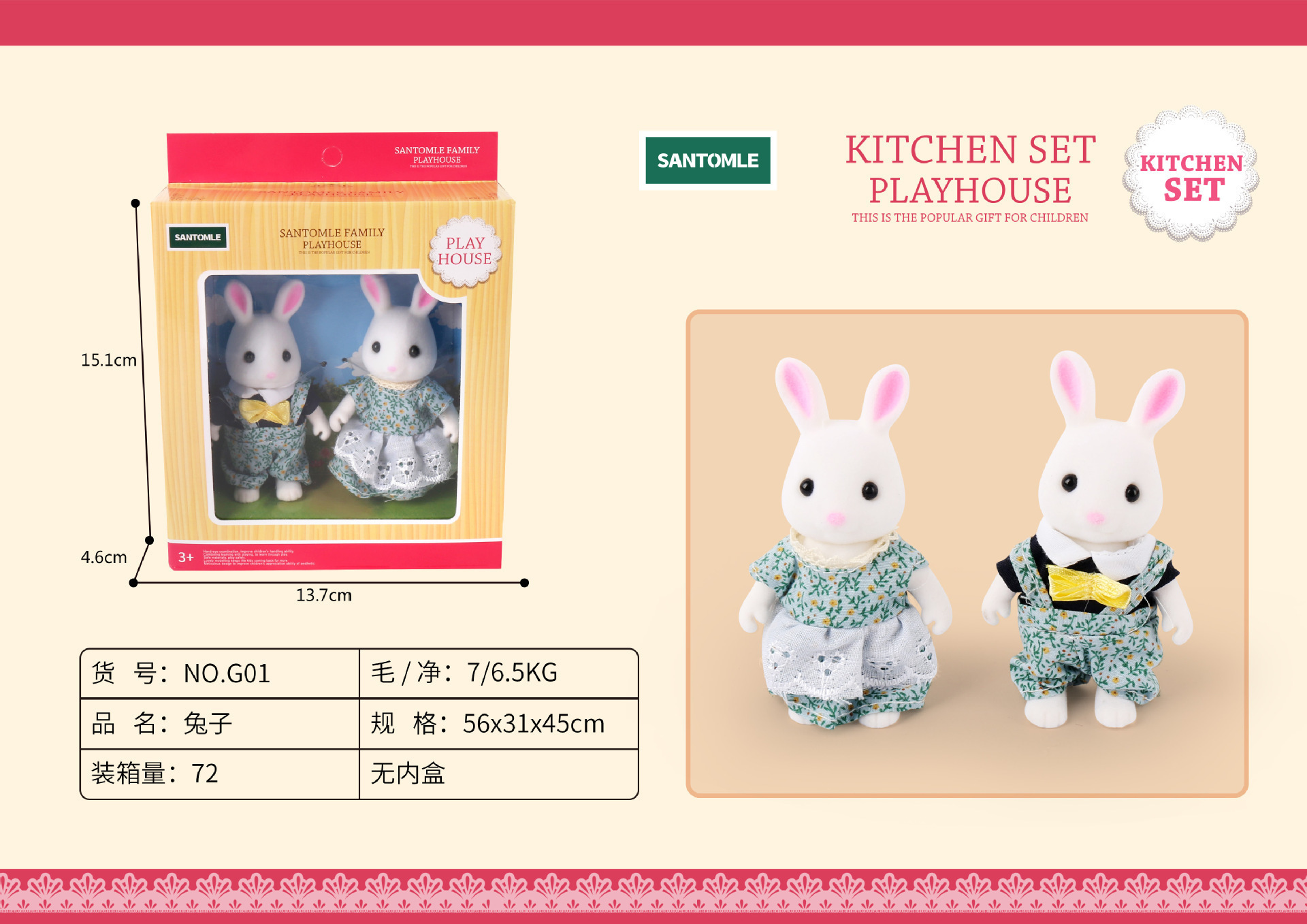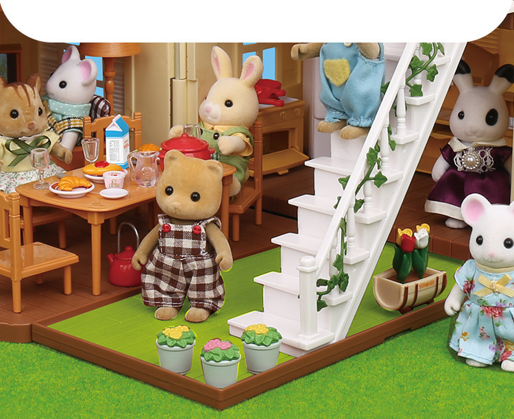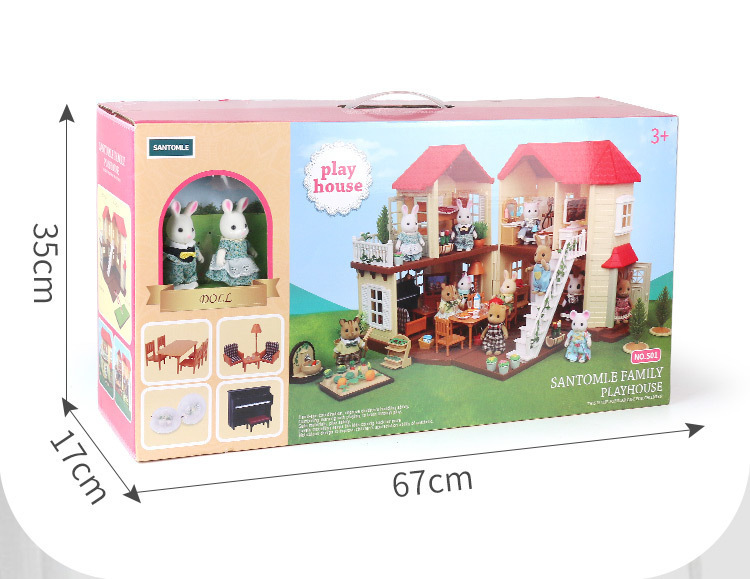 센벨 동물 가족 미니 토끼 인형 집 어린이 놀이 집 시뮬레이션 빌라 세트 소녀 장난감 배치