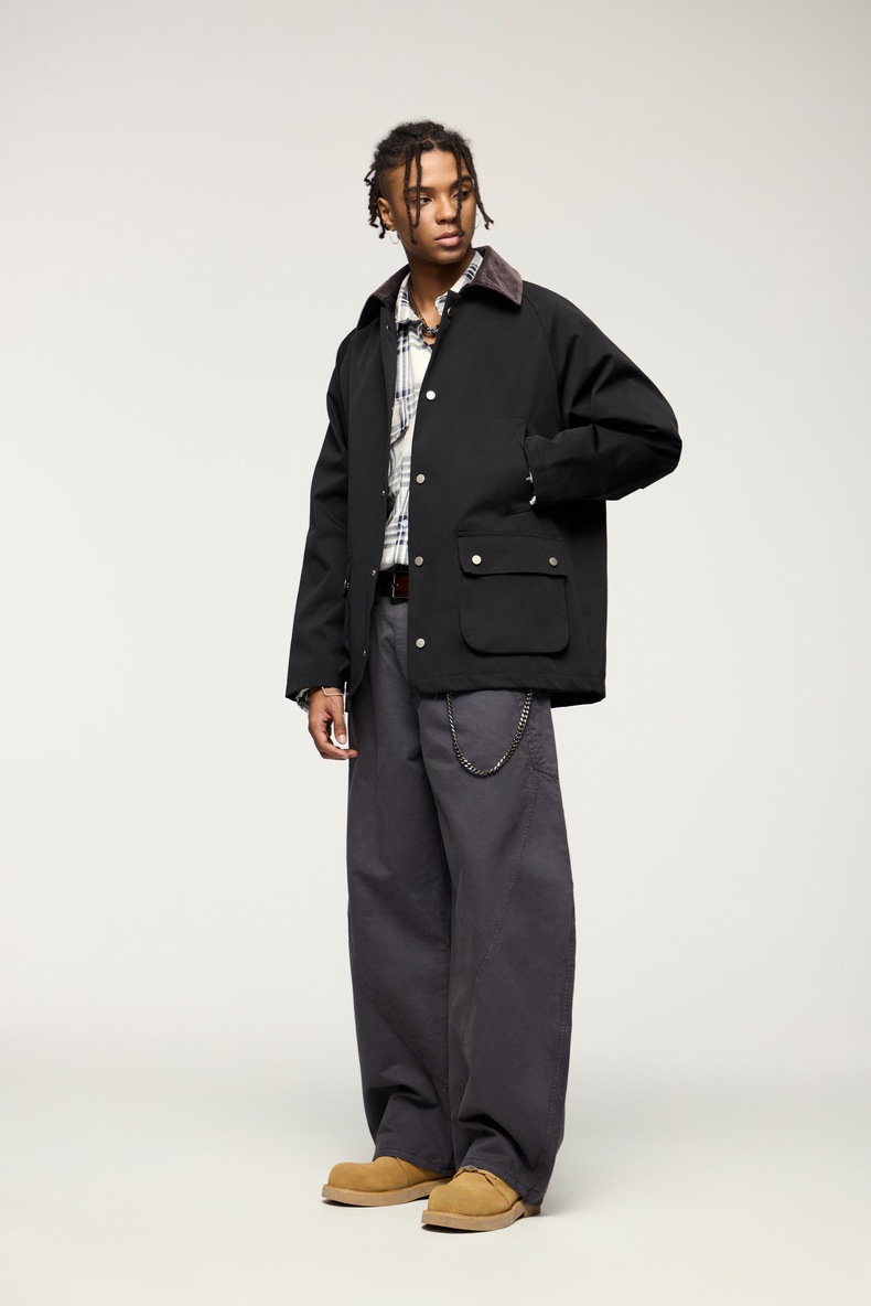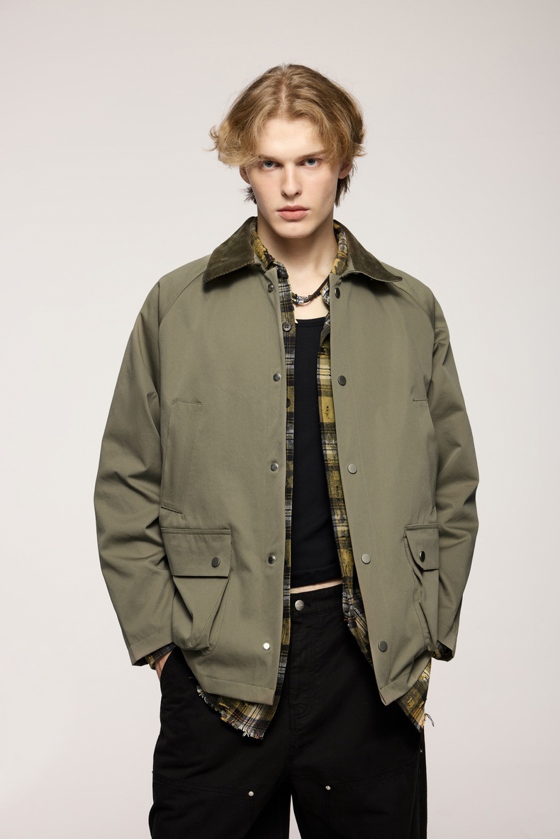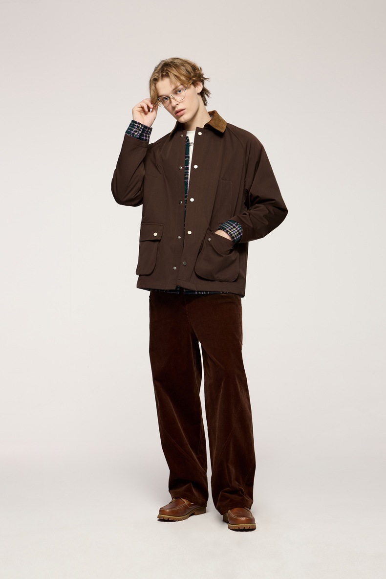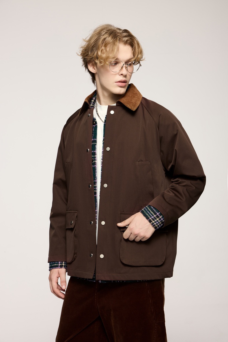지에잔 남성복 | 신축성 있는 주름 방지 헌팅 재킷 2026 남성용 봄 가을 아우터 아메리칸 레트로 라펠 워크웨어