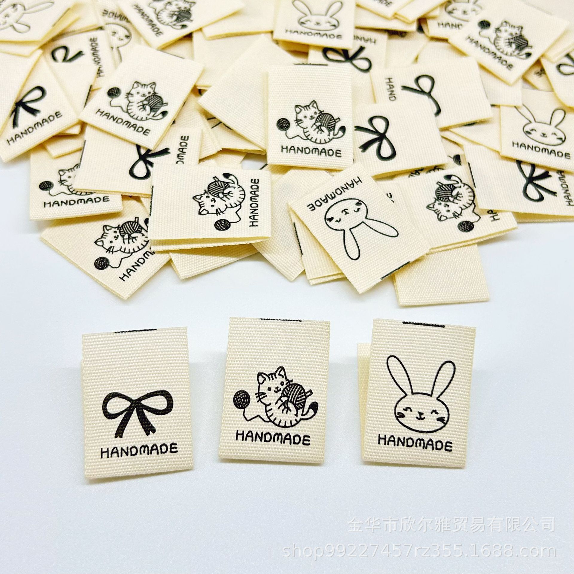handmade本白纯棉印标现货柔软对折领标商标童装手工品玩具标签