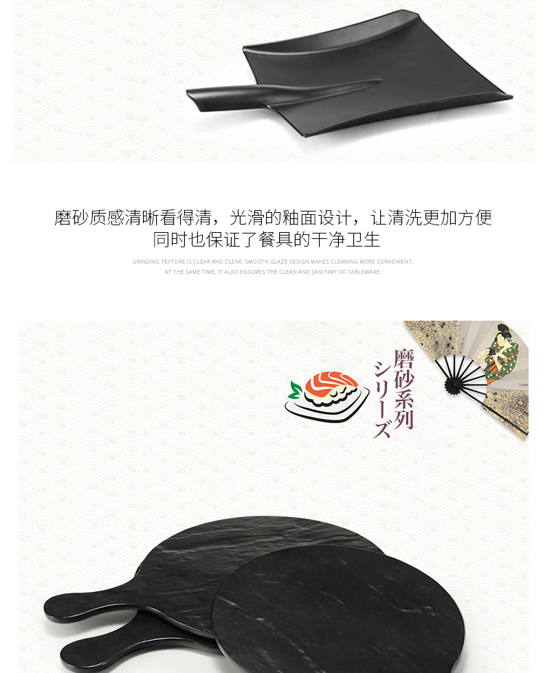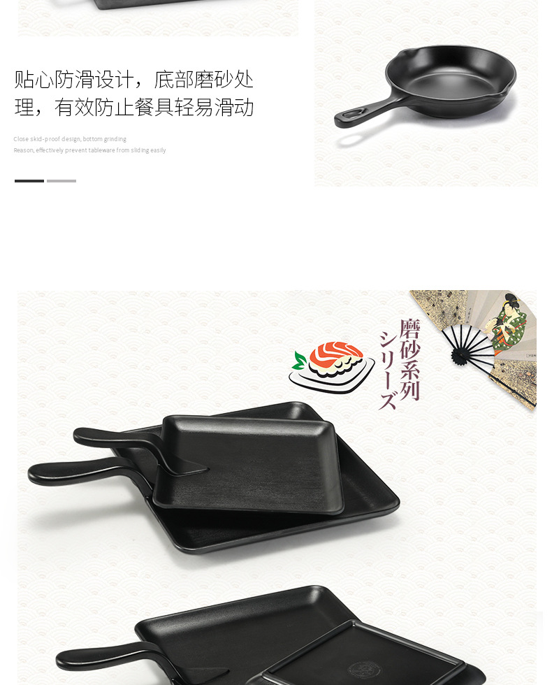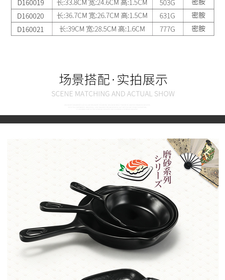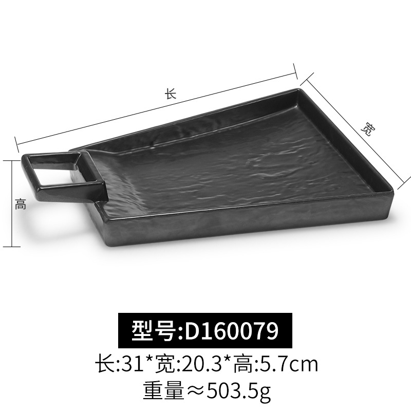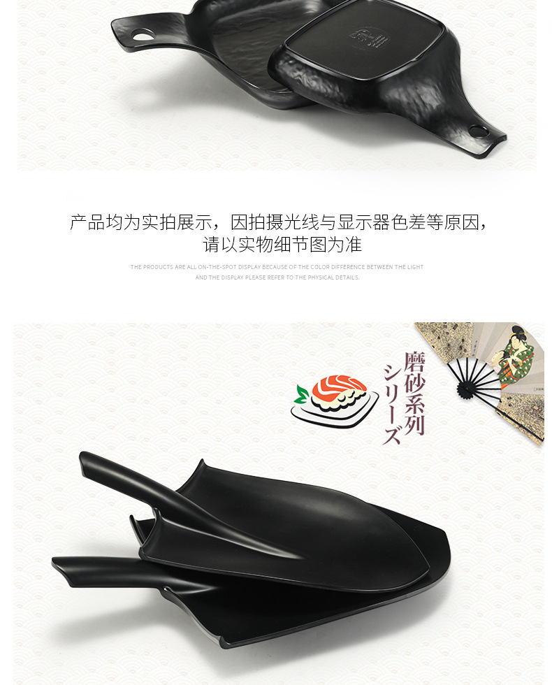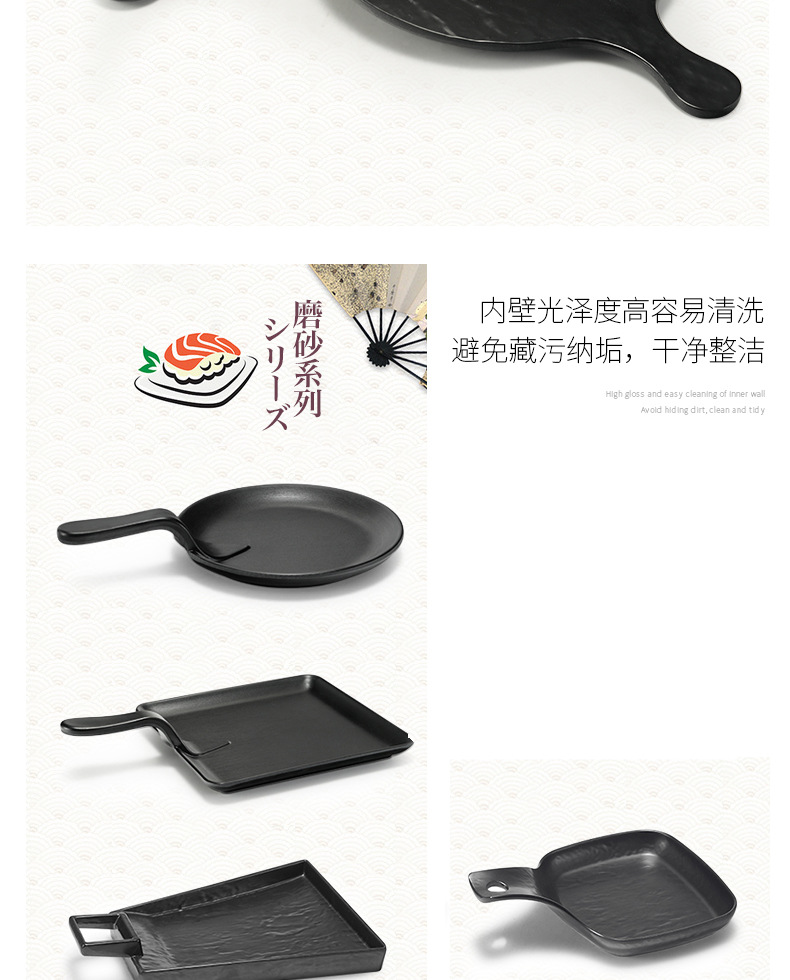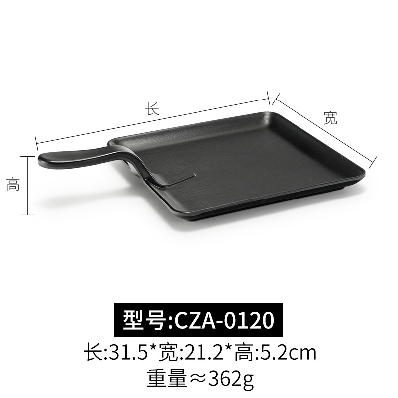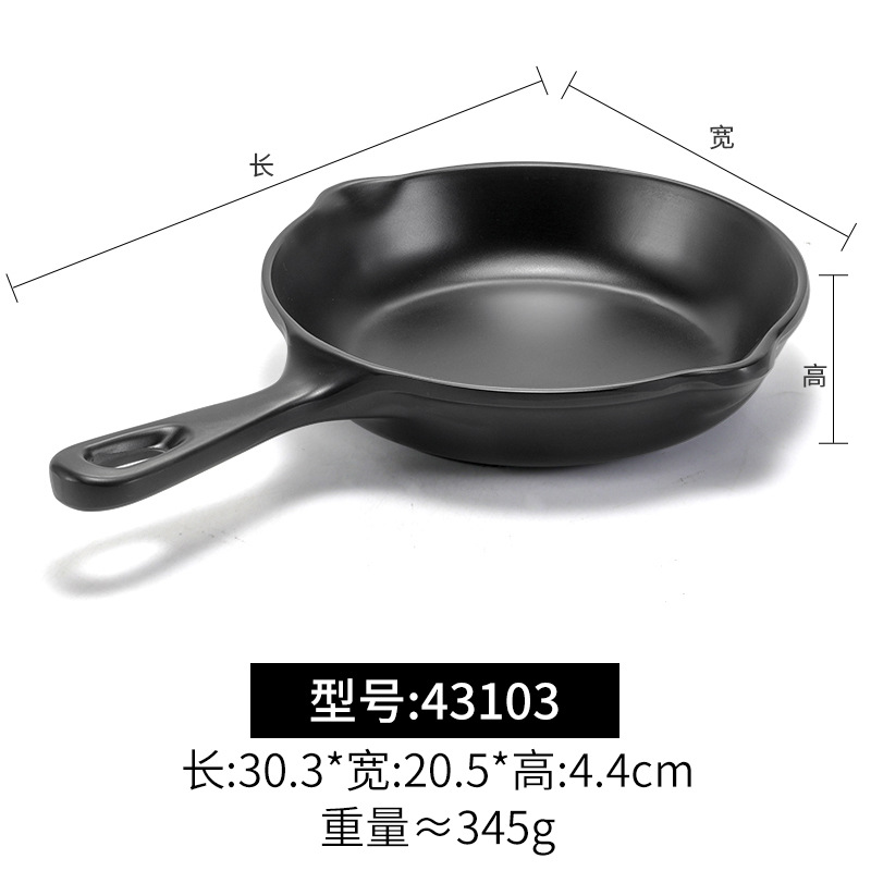 멜라민 블랙 먹고 파종 창조적 인 접시 냄비 바베큐 레스토랑 핸들 볶음밥 판 평판 삽 팬 상업