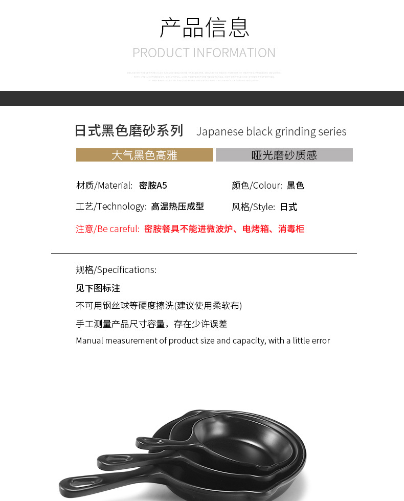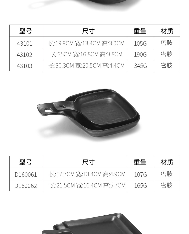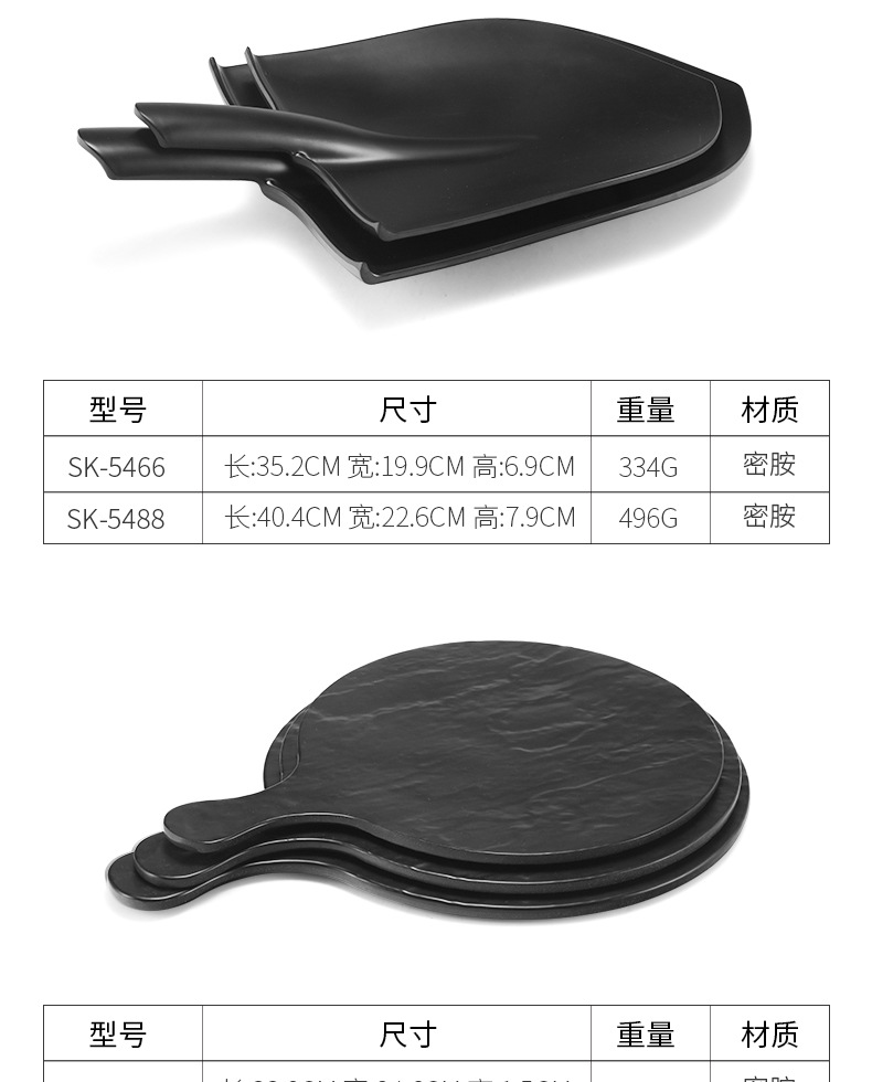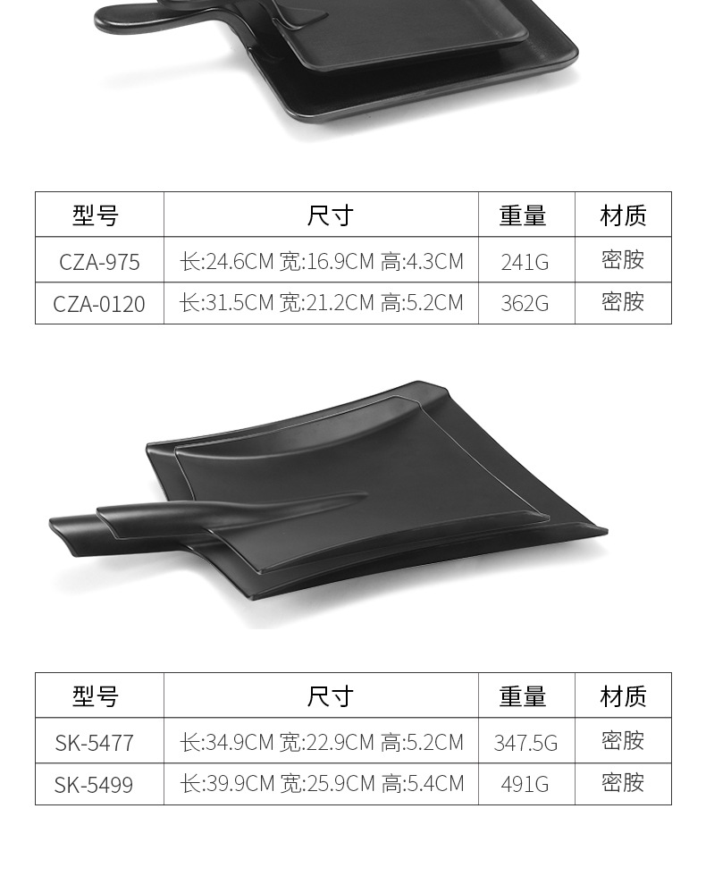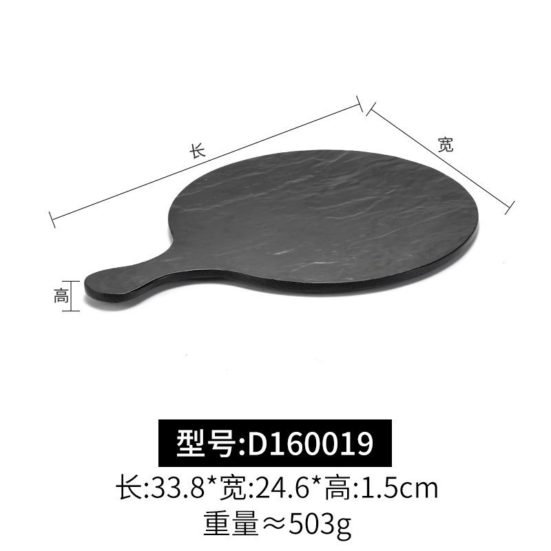 멜라민 블랙 먹고 파종 창조적 인 접시 냄비 바베큐 레스토랑 핸들 볶음밥 판 평판 삽 팬 상업스토어 가기