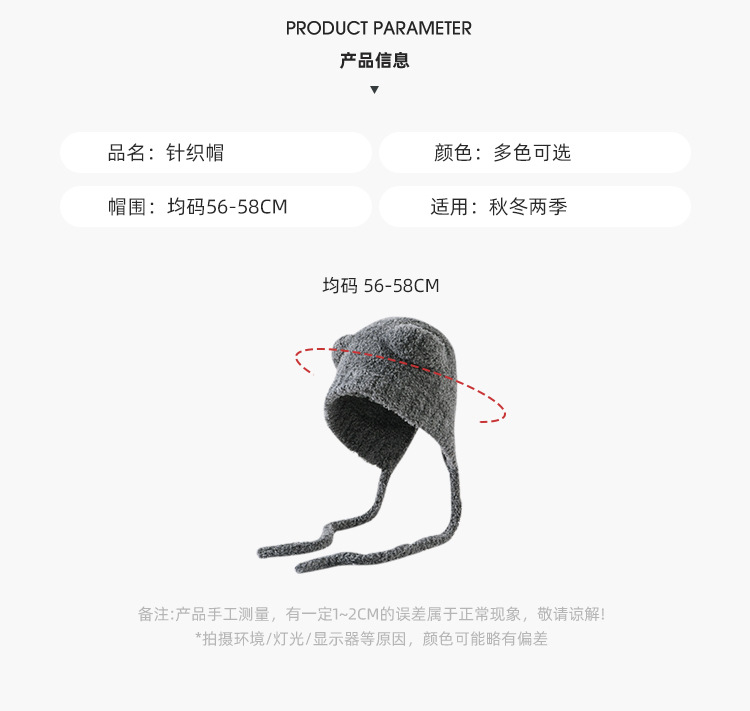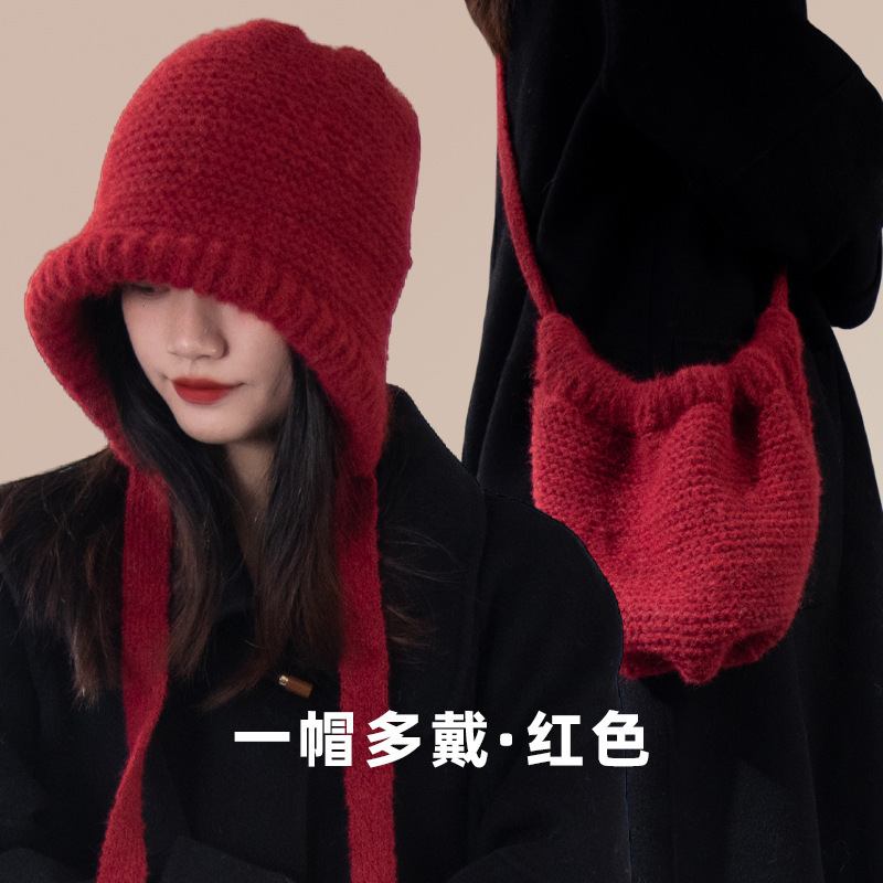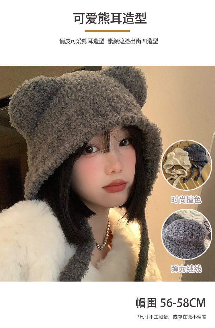 가을과 겨울 귀여운 레이스 업 베어 봉제 양모 모자 여성 패션 인터넷-인기있는 빅 헤드 올 매치 이어 보호 타이드 니트 모자