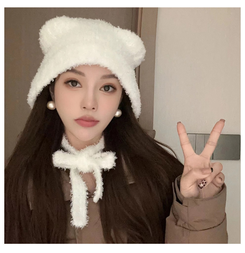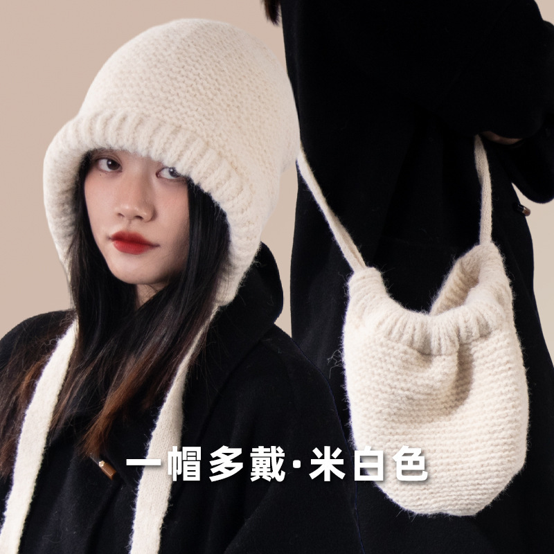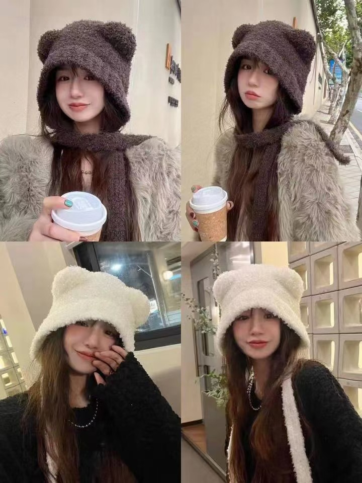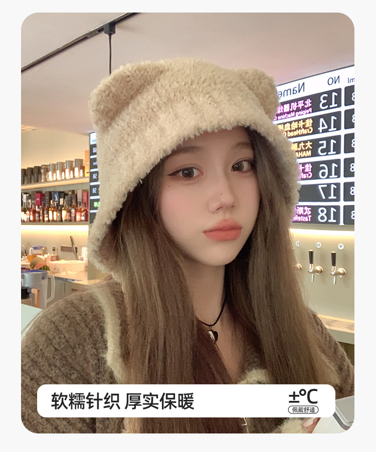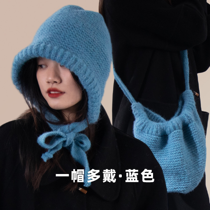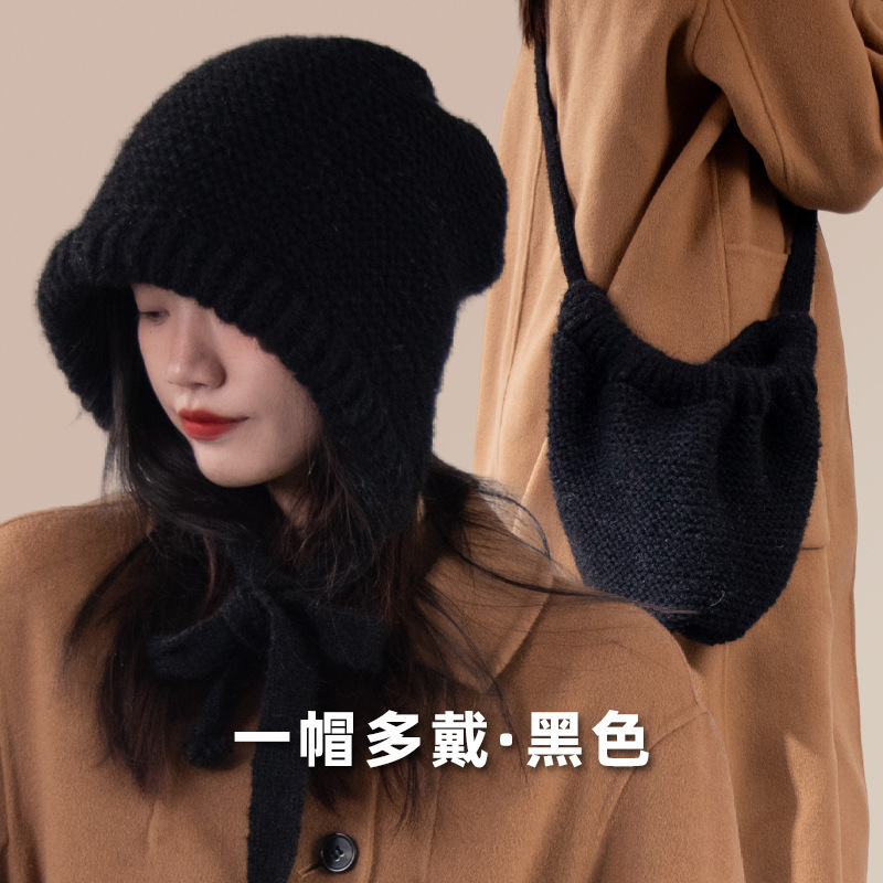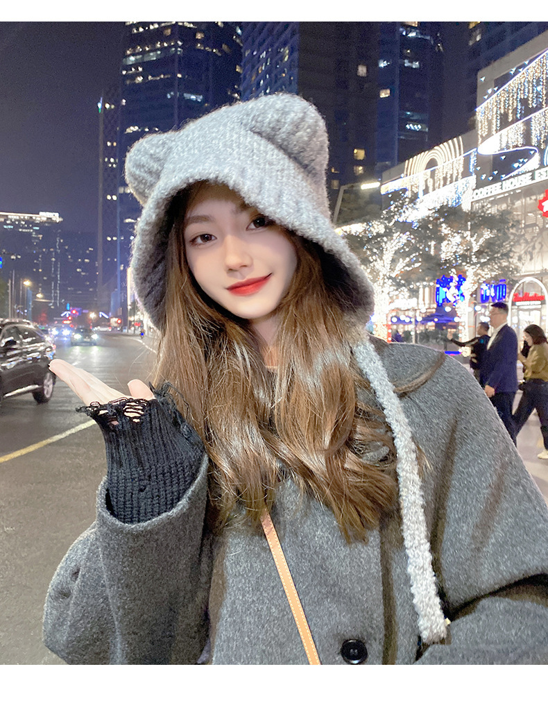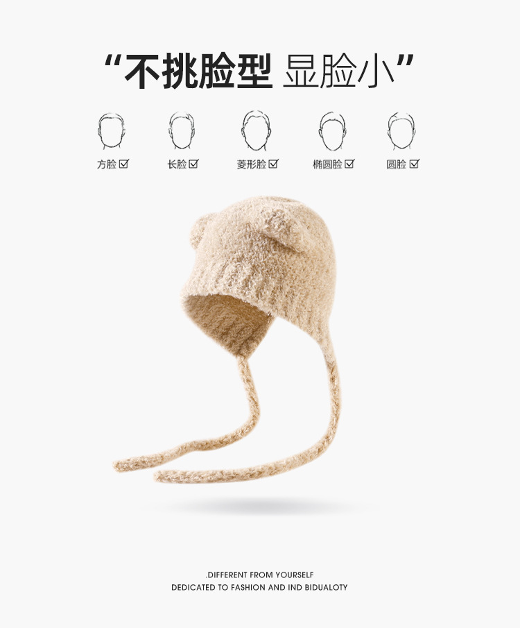 가을과 겨울 귀여운 레이스 업 베어 봉제 양모 모자 여성 패션 인터넷-인기있는 빅 헤드 올 매치 이어 보호 타이드 니트 모자스토어 가기