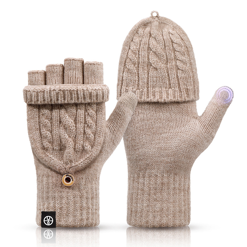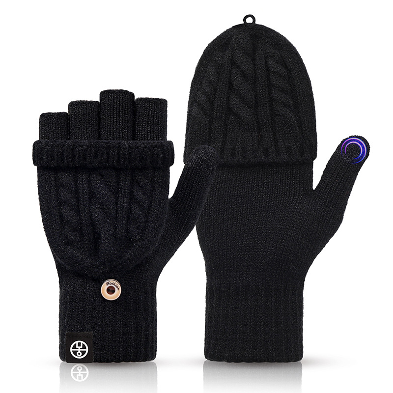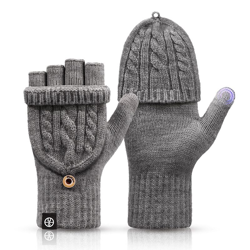 여성용 겨울 플립탑 겸용 반손가락 장갑, 방한 및 보온 학생용 터치스크린 장갑, 남성용 두꺼운 벨벳 오픈 핑거 장갑