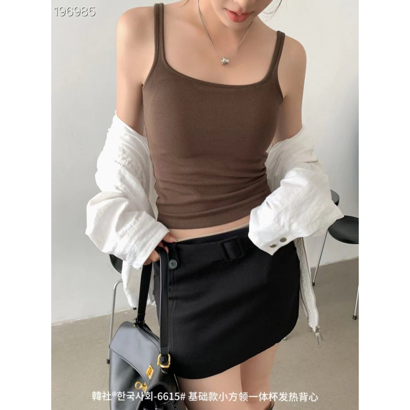 한국사회 6615 가을 · 겨울 기본 스몰 스퀘어 칼라 통합컵 슬링 백 여자 편안한 올매치 여자 가슴 패드스토어 가기