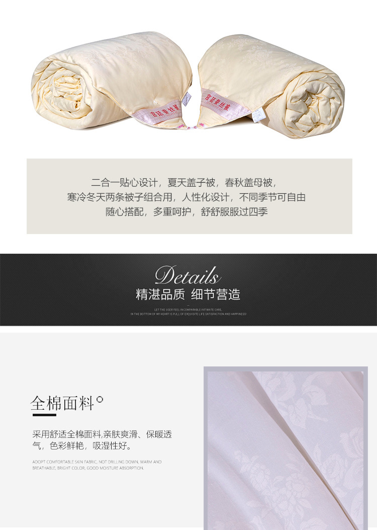 고급 통샹 실크 이불, 고급 뽕나무 실크 100% 고대 순면 수제 실크 봄, 가을 이불 및 이불 코어 배치