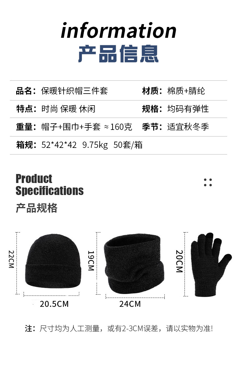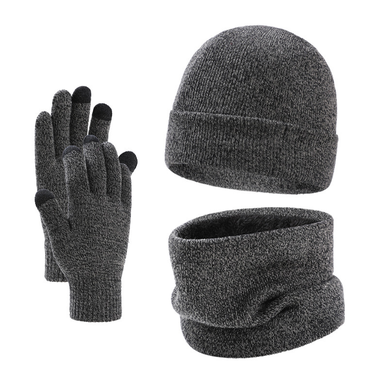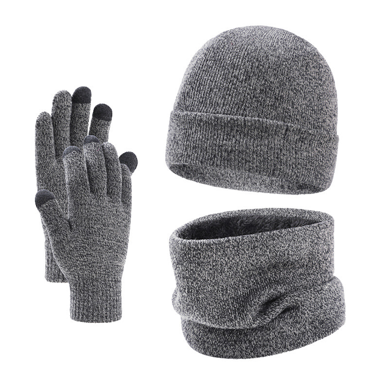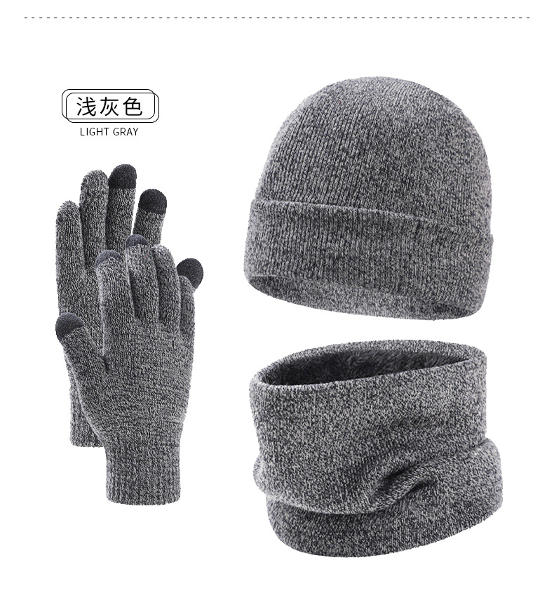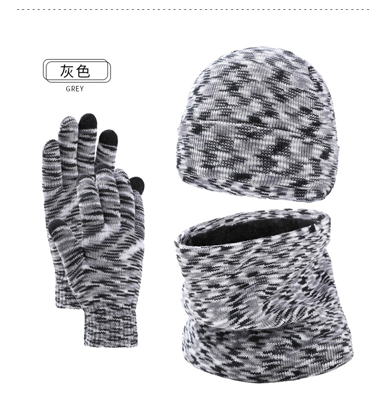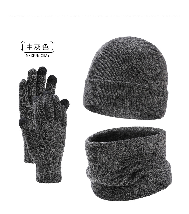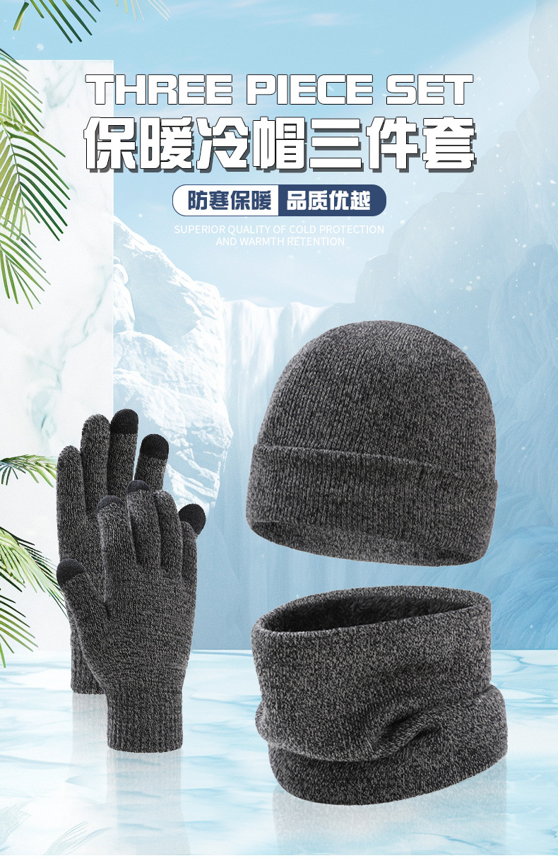 아마존 국경 간 유럽과 미국의 니트 모자 스카프 장갑 3 피스 세트 남성용 모자 야외 기모 냉난방 모자