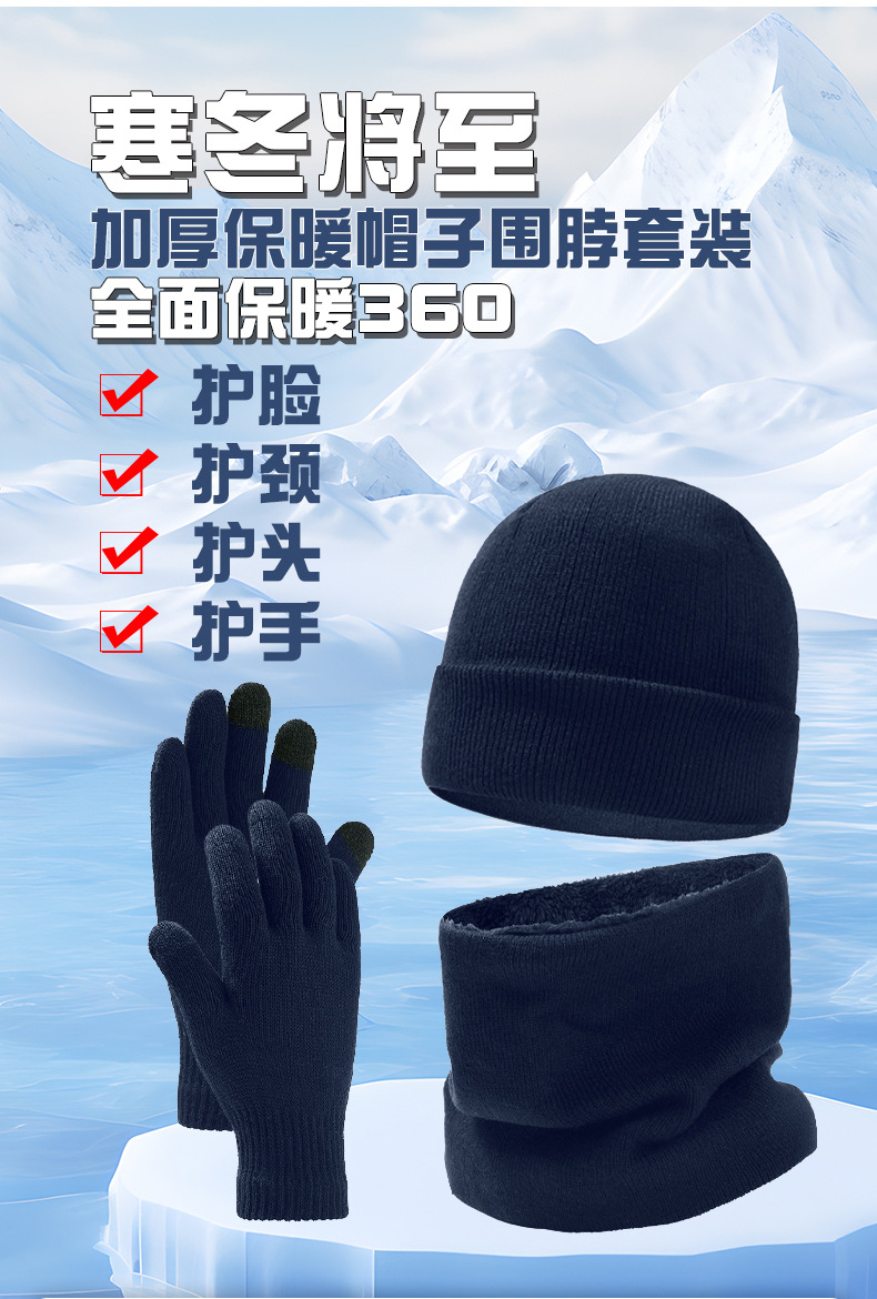 아마존 국경 간 유럽과 미국의 니트 모자 스카프 장갑 3 피스 세트 남성용 모자 야외 기모 냉난방 모자스토어 가기