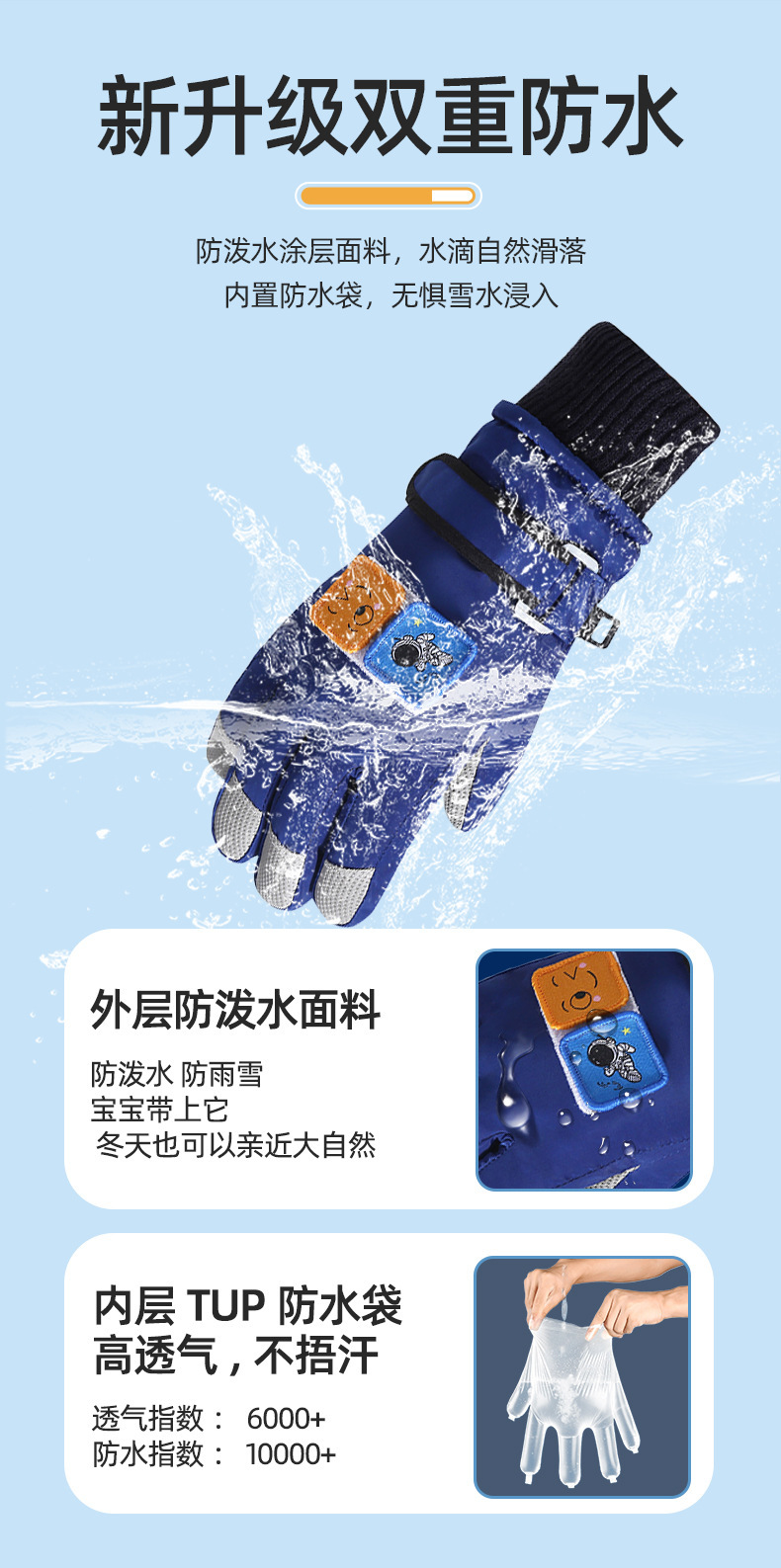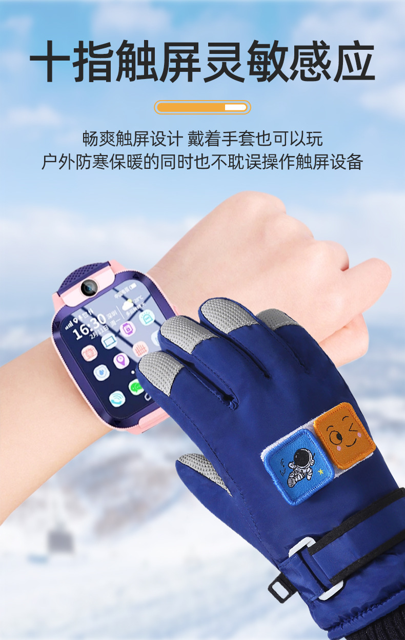 어린이 장갑 겨울 스키 따뜻한 기모 두꺼운 감기가없는 4-12 세 미끄럼 방지 터치 스크린 미끄럼 방지 라이딩 장갑