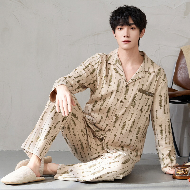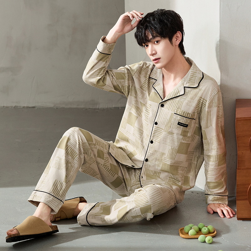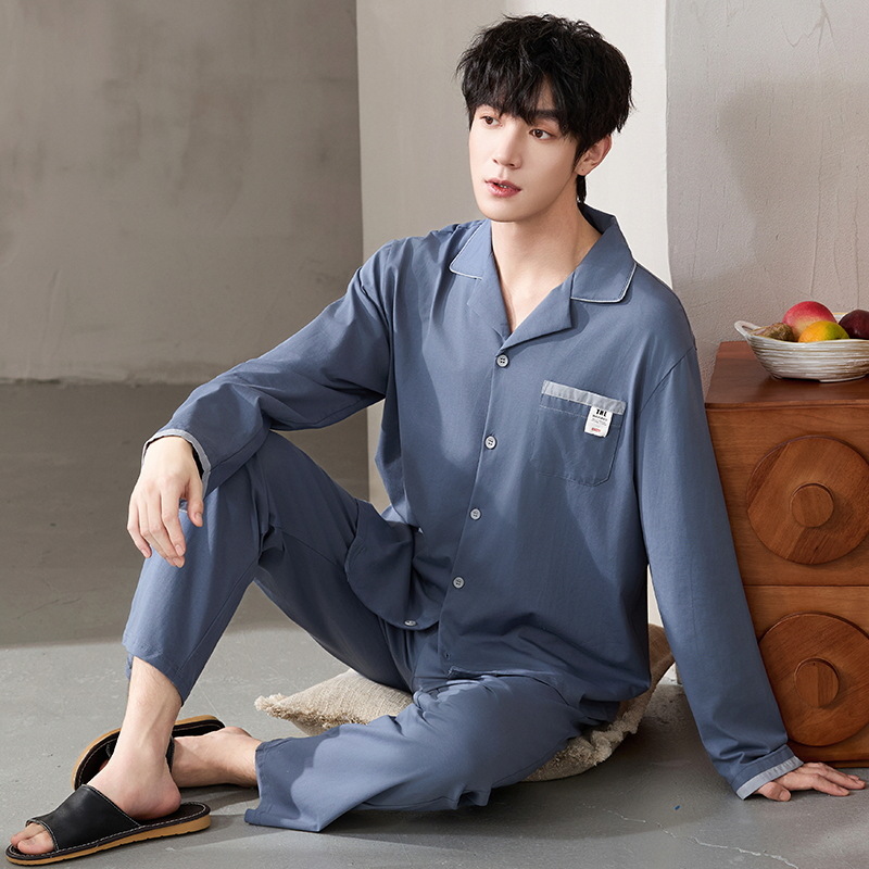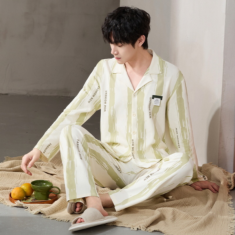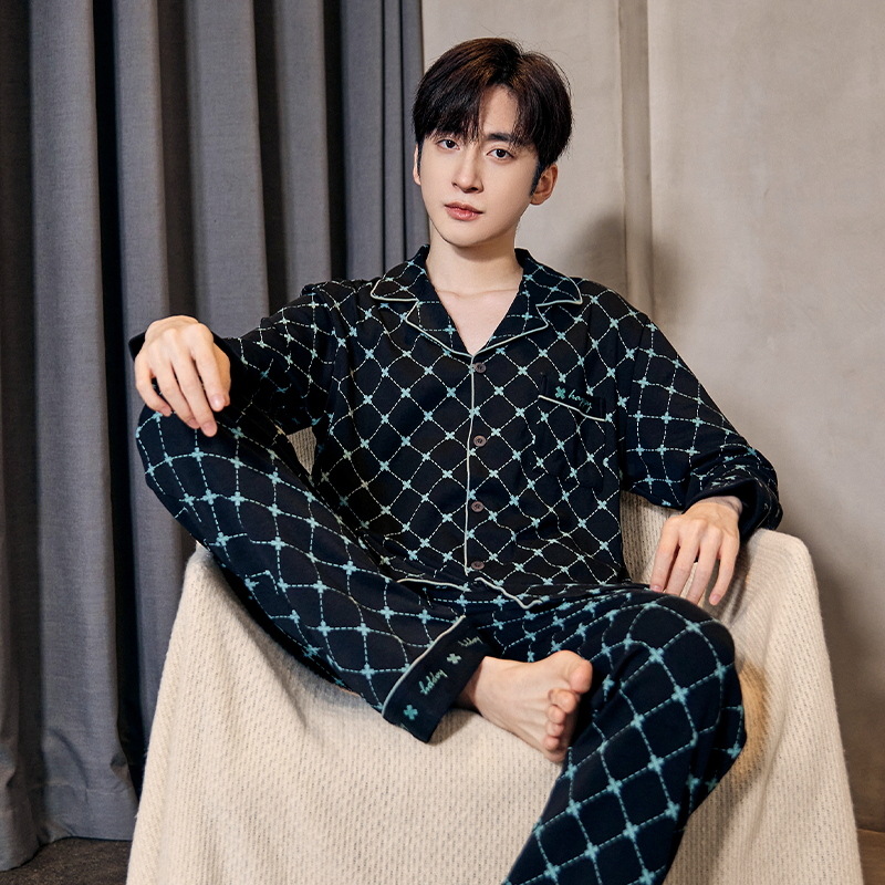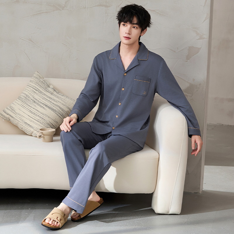 루시 2025년 신상 남성용 잠옷, 봄/가을용, 항균 순면, 긴팔, 루즈핏, 외출복으로도 활용 가능, 청소년 홈웨어스토어 가기
