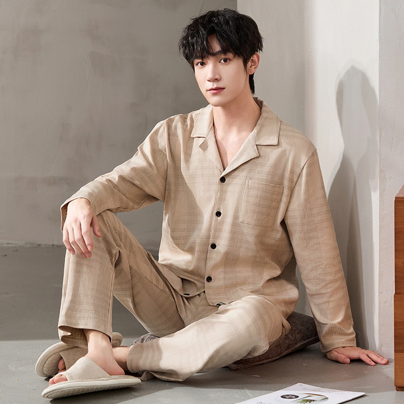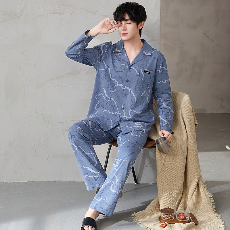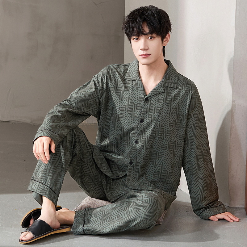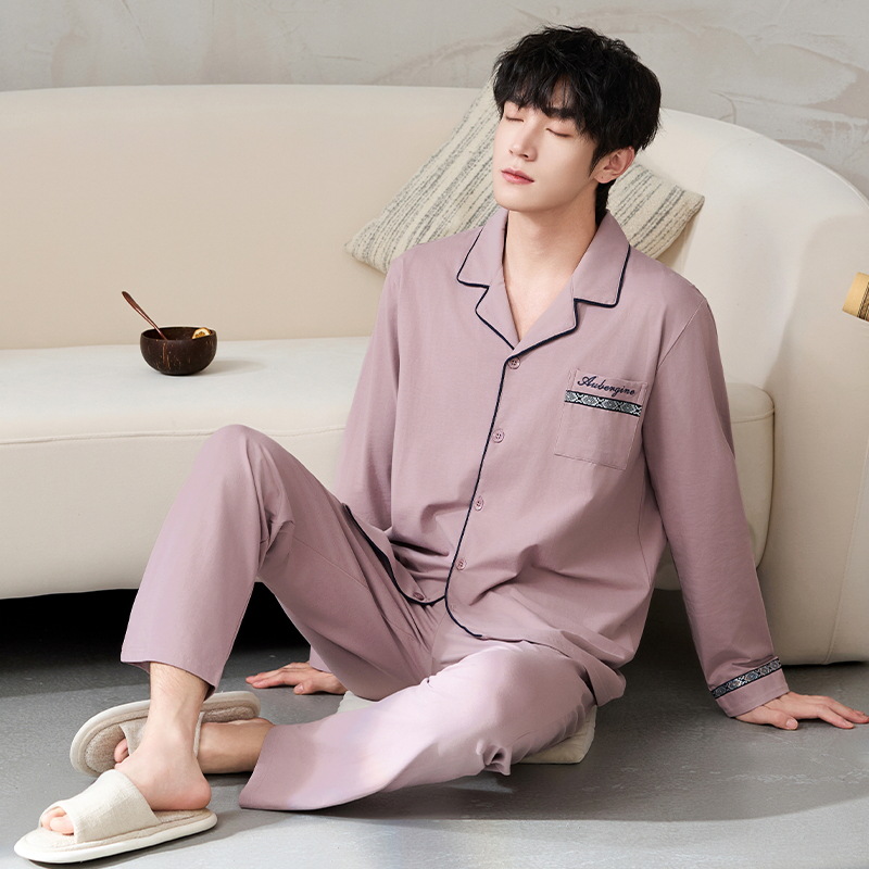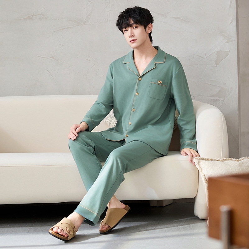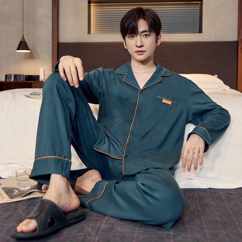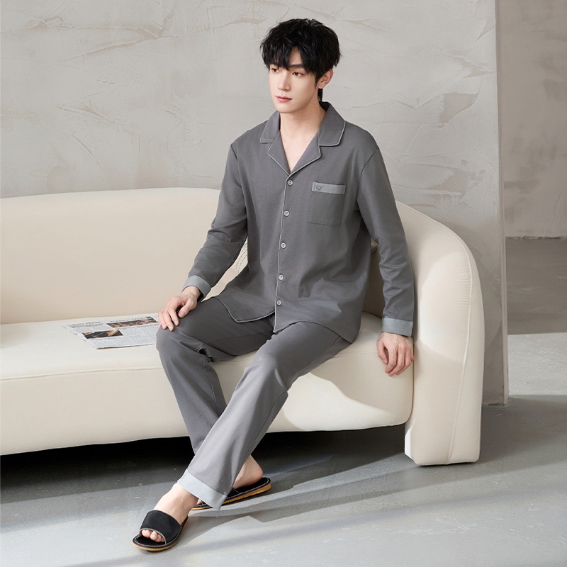 루시 2025년 신상 남성용 잠옷, 봄/가을용, 항균 순면, 긴팔, 루즈핏, 외출복으로도 활용 가능, 청소년 홈웨어스토어 가기