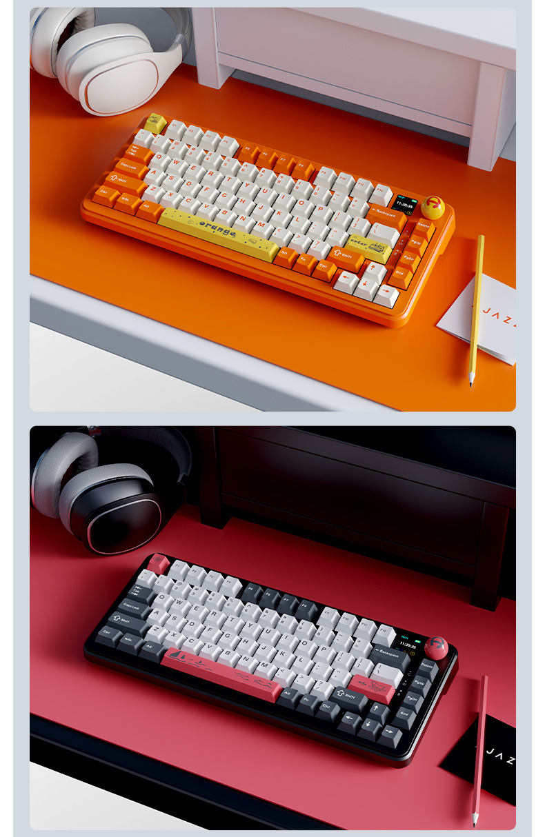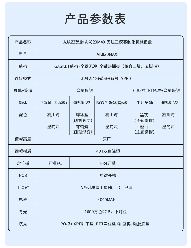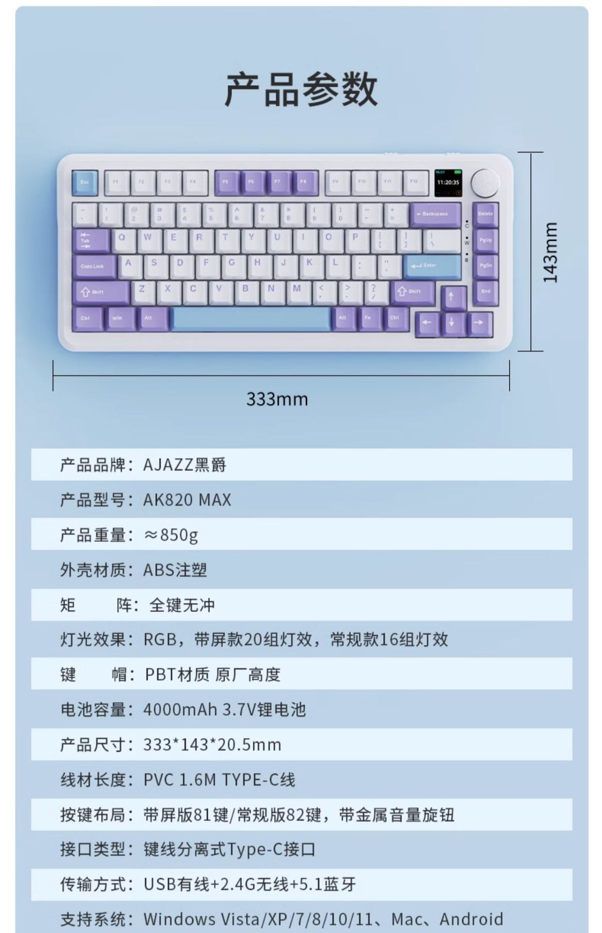 블랙 쥬어 AK820Max 블루투스 3 모드 무선 기계식 키보드 가스켓 구조 스크린 e 스포츠 키보드