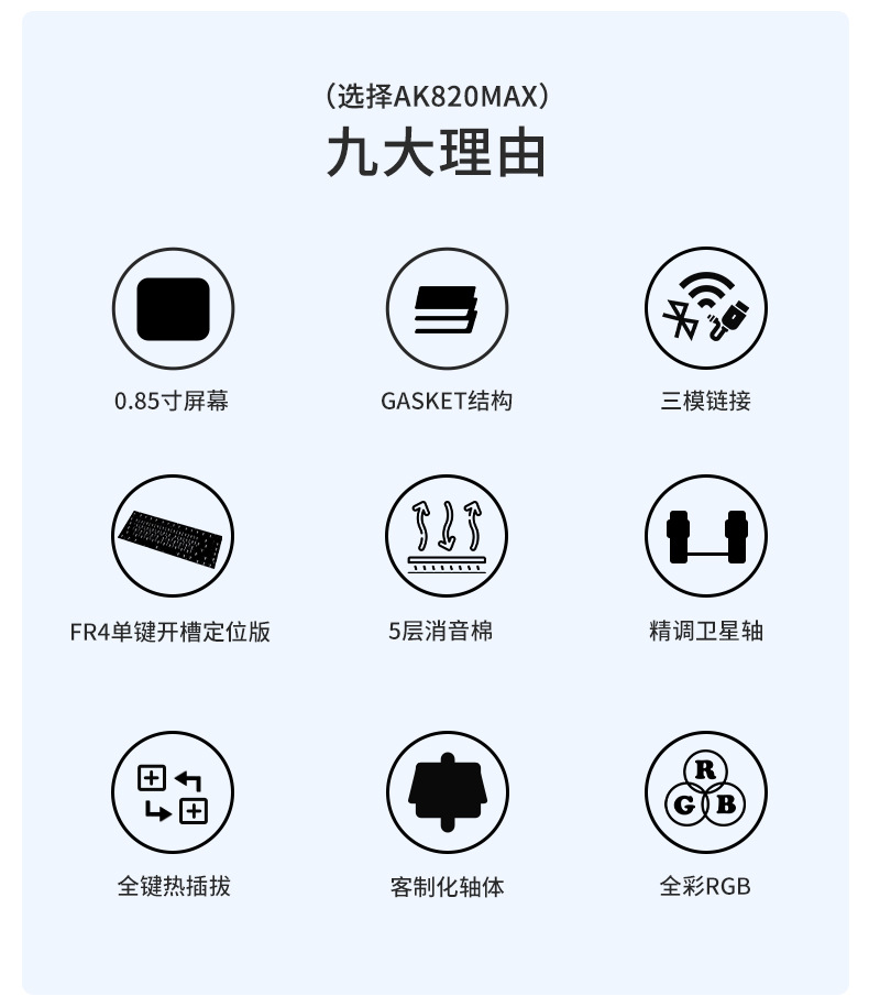 블랙 쥬어 AK820Max 블루투스 3 모드 무선 기계식 키보드 가스켓 구조 스크린 e 스포츠 키보드스토어 가기