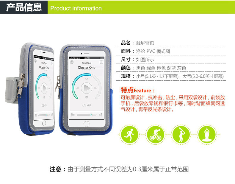 스포츠 암 가방 도매 남성과 여성의 야외 다이빙 소재 휴대 전화 가방 땀 흡수성 남성과 여성의 피트니스 실행 휴대 전화 팔 가방