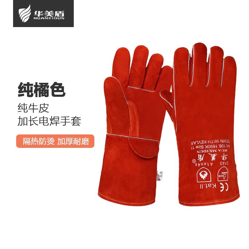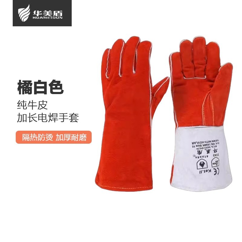 Huamei 방패 노동 보호 전기 용접 장갑 긴 Cowhide 고온 저항하는 내마모성 용접 방열제 단열 방열 장갑스토어 가기