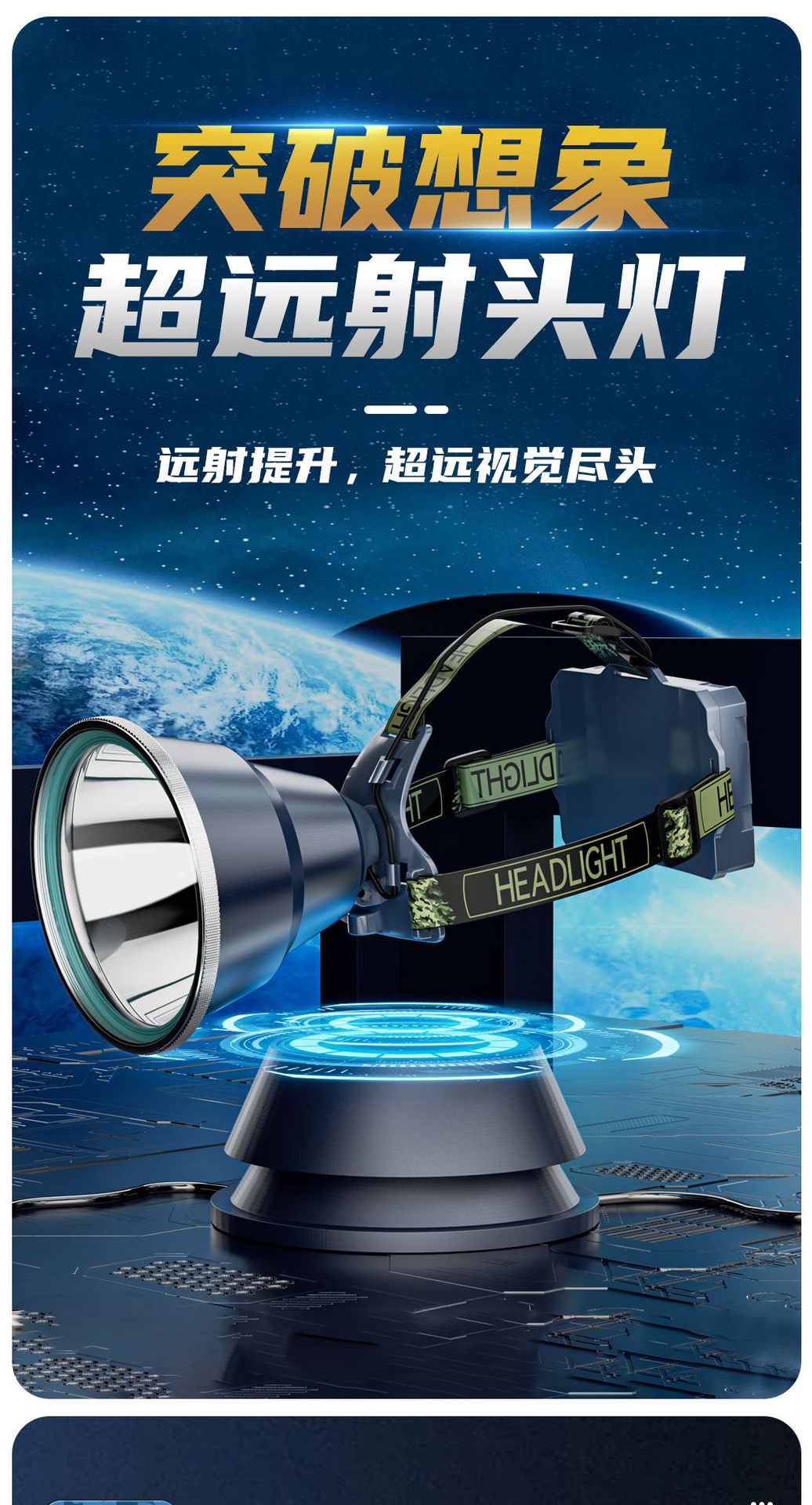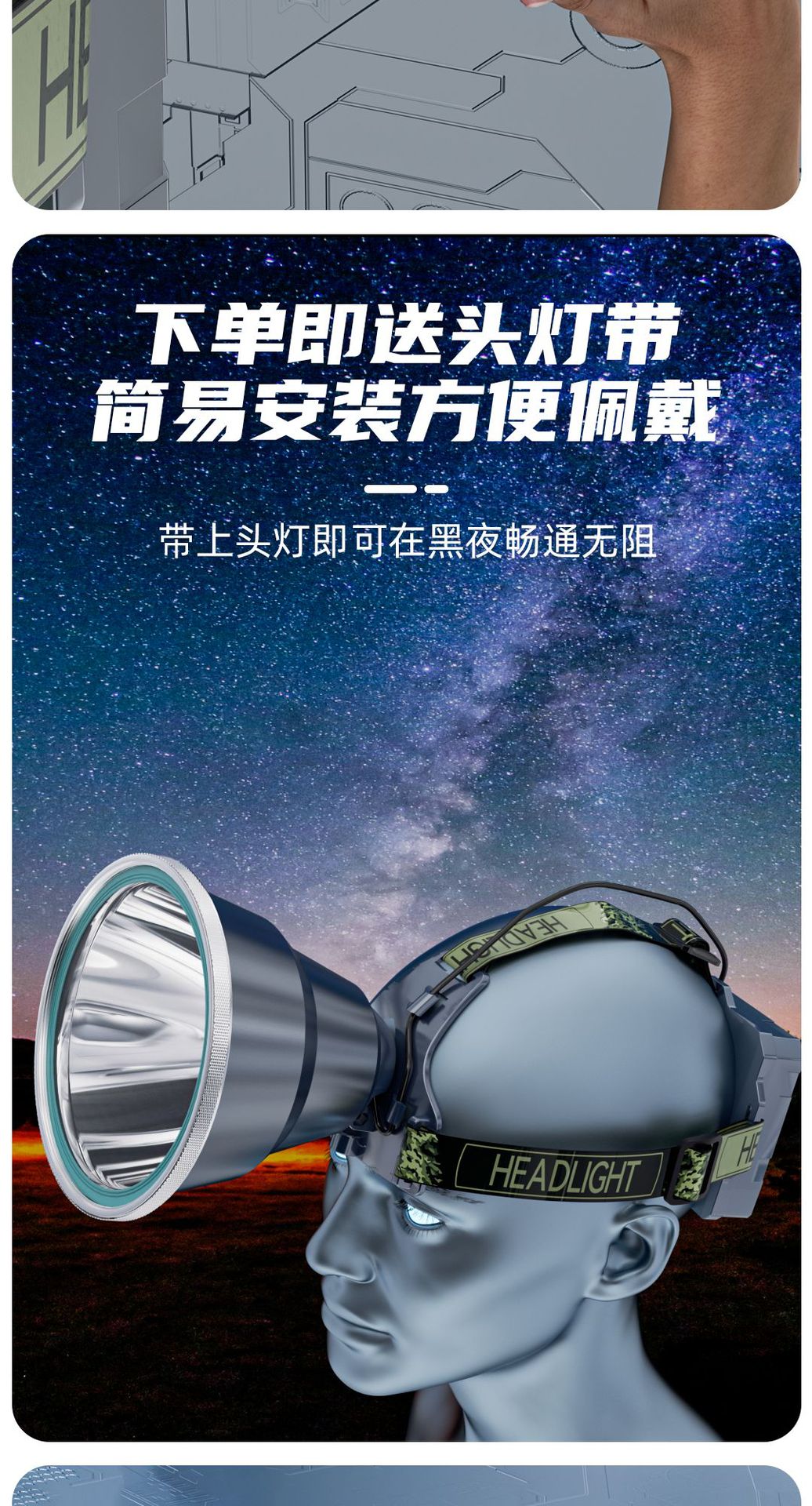 LED 전조등 높은 전력 긴 지구력 충전식 야외 강한 빛 낚시 비상 탐조등 돌진 바다 캠핑 도매스토어 가기