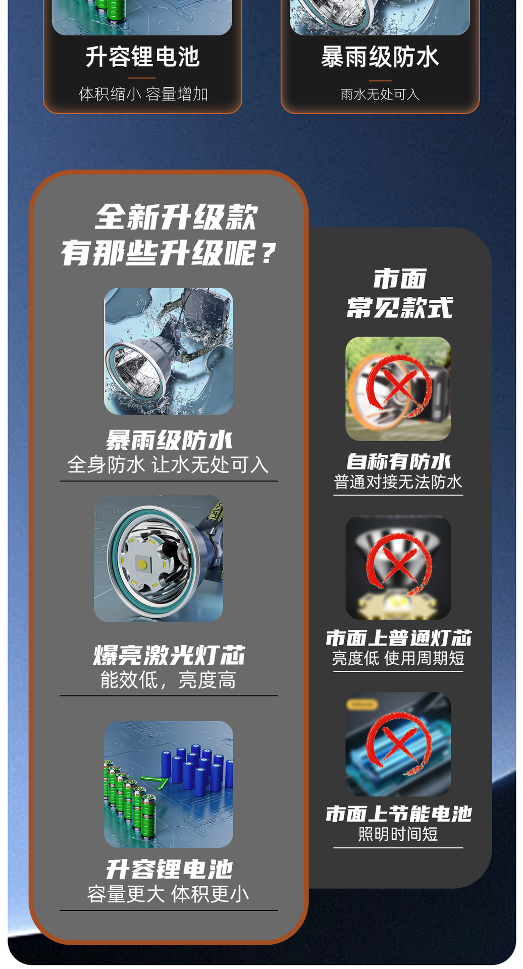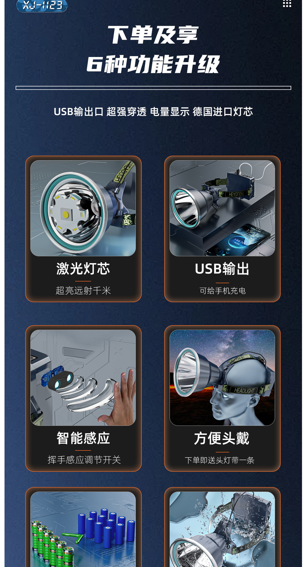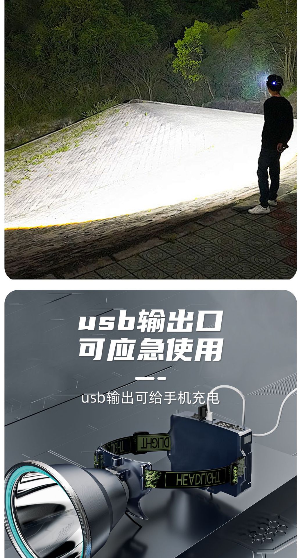 LED 전조등 높은 전력 긴 지구력 충전식 야외 강한 빛 낚시 비상 탐조등 돌진 바다 캠핑 도매