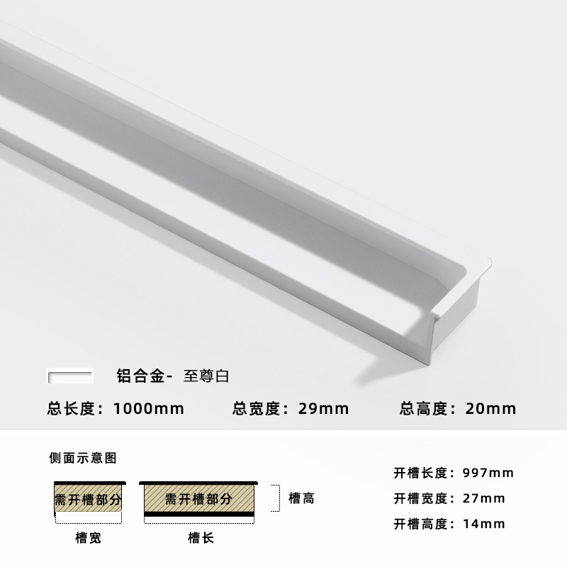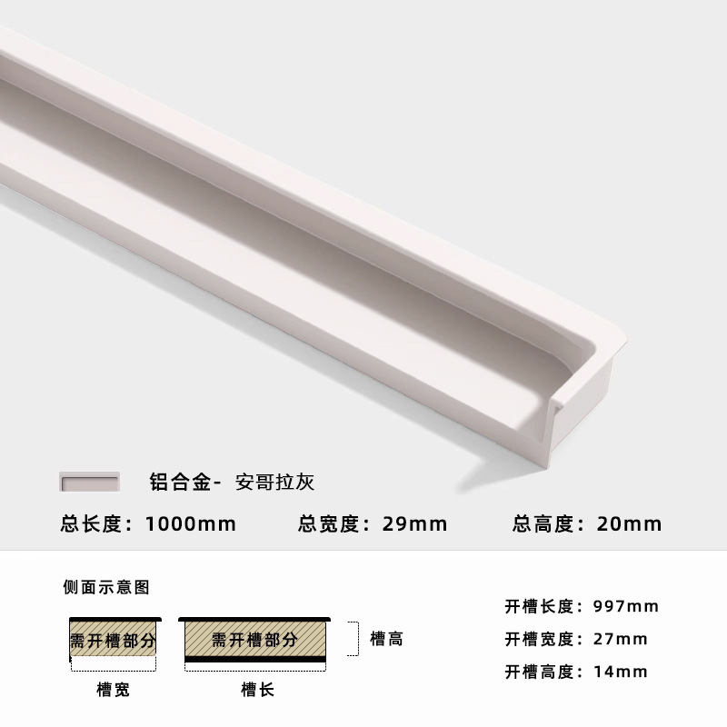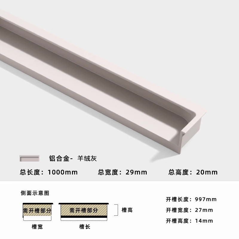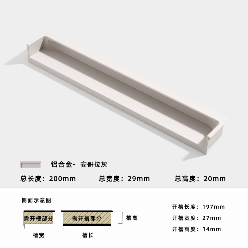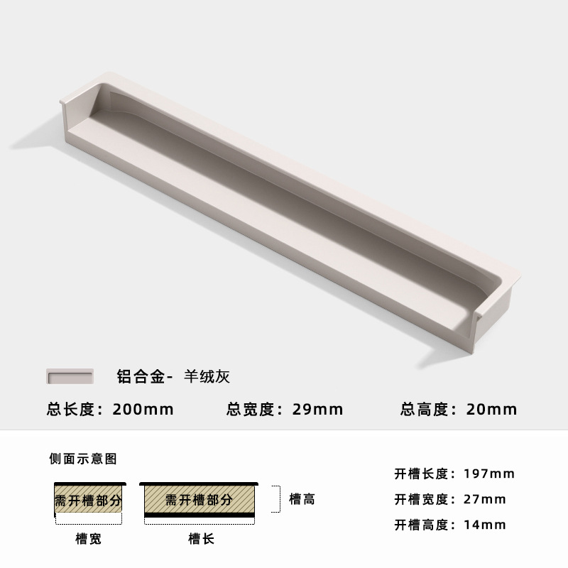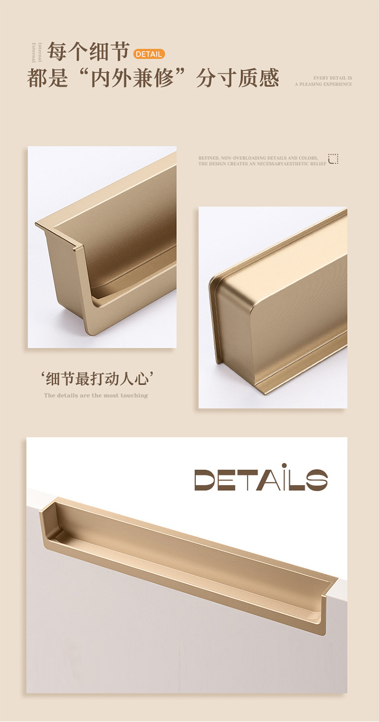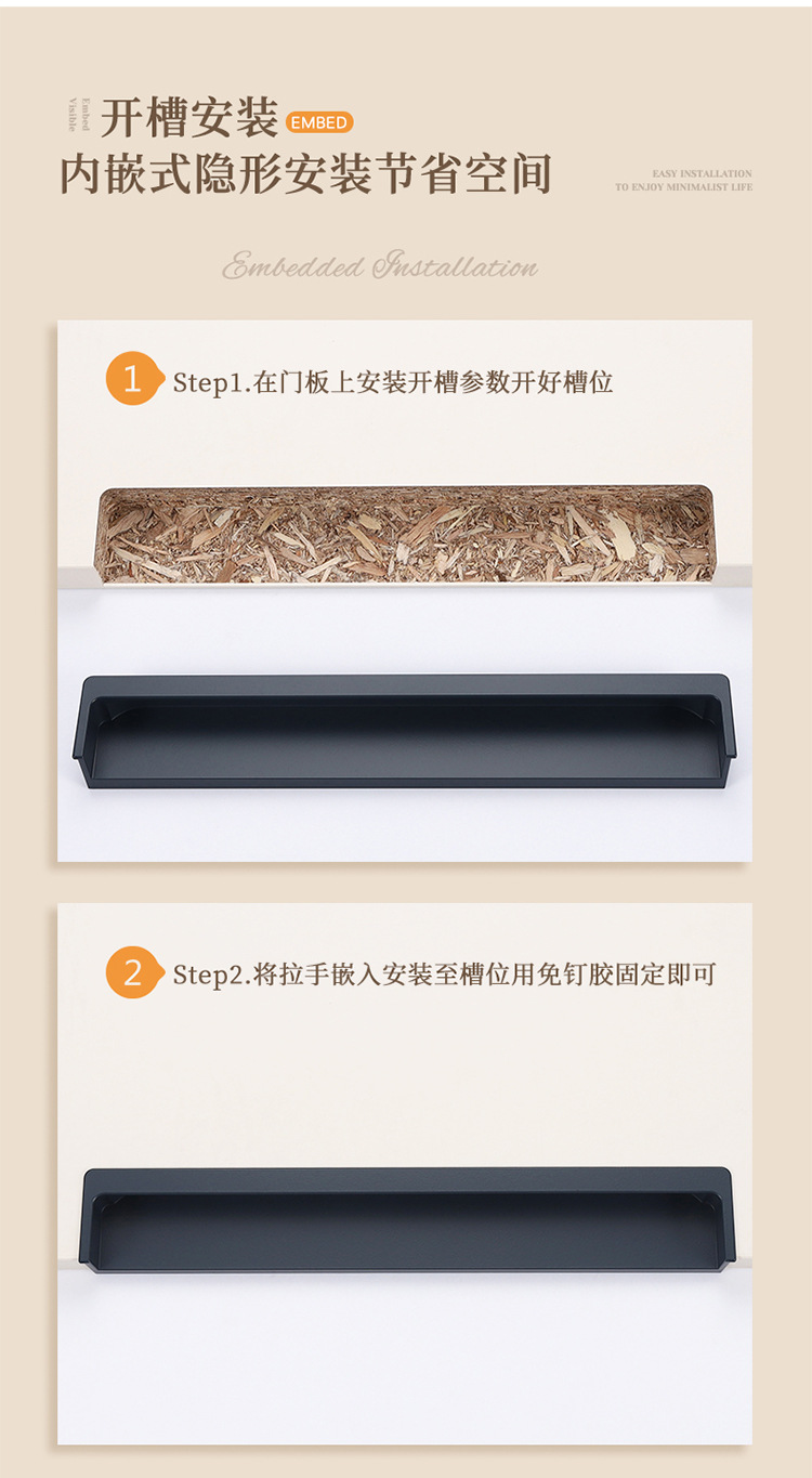 동일 색상 숨김 손잡이 피부 느낌의 홈이 있는 매립형 캐비닛 도어 손잡이 서랍장 캐비닛 도어 핸들