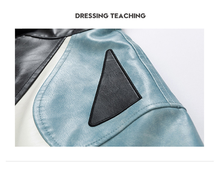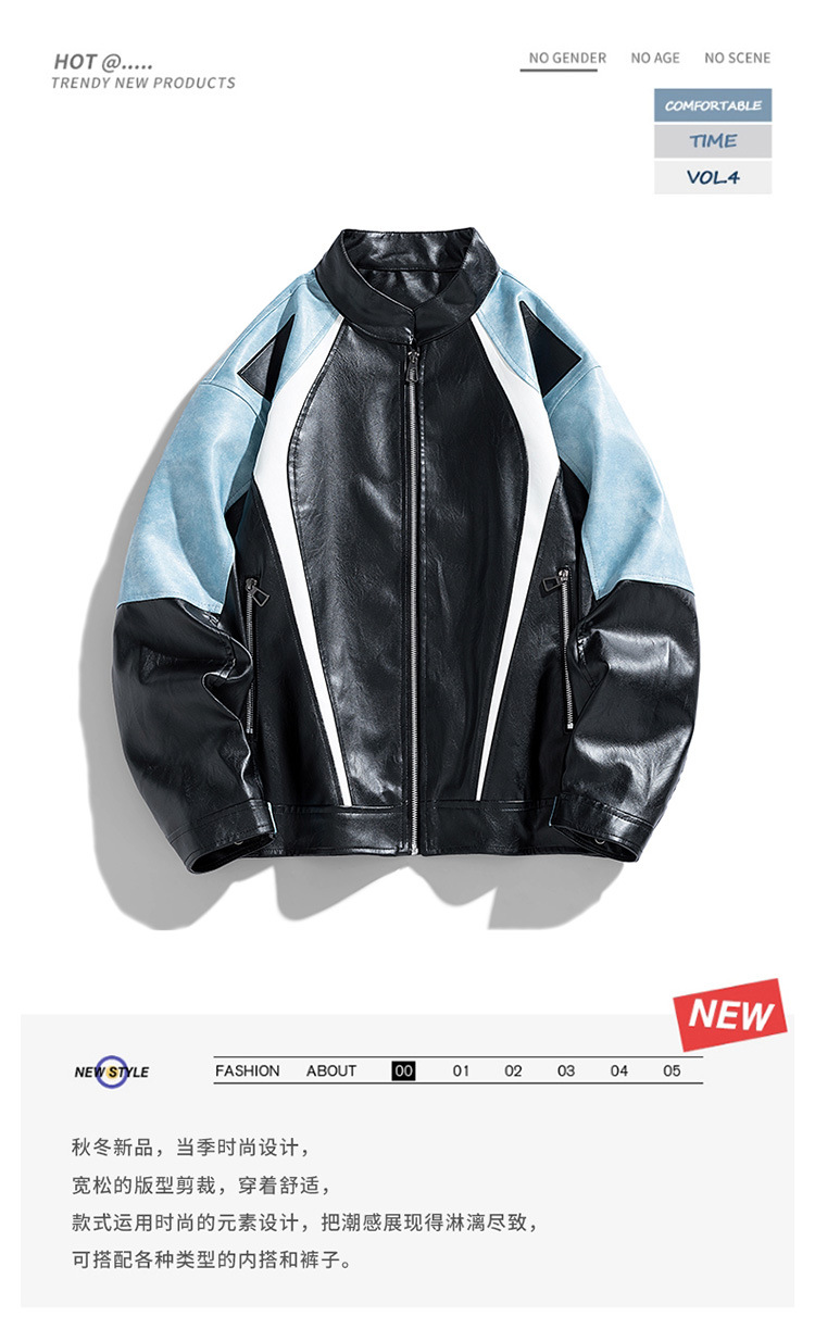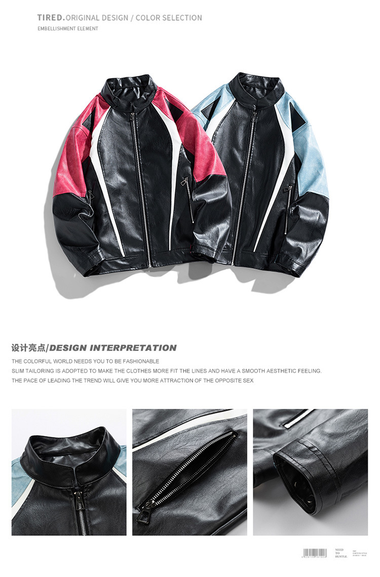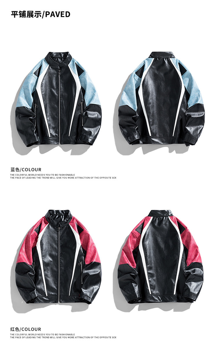 가죽 자켓 남자 2024 봄과 가을 새로운 미국 하이 스트리트 스티칭 대조 컬러 퍼피 핸섬 느슨한 오토바이 PU 가죽 자켓스토어 가기