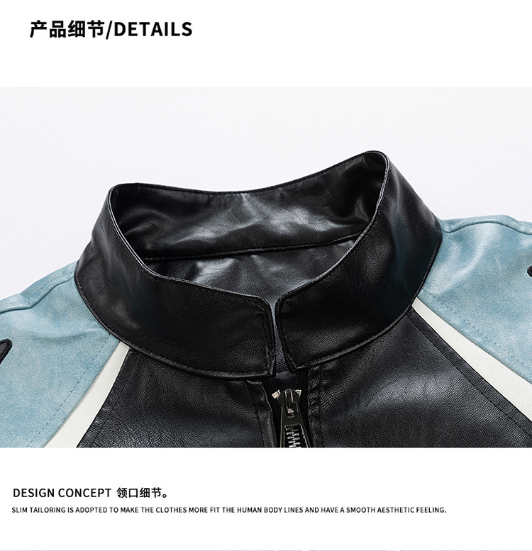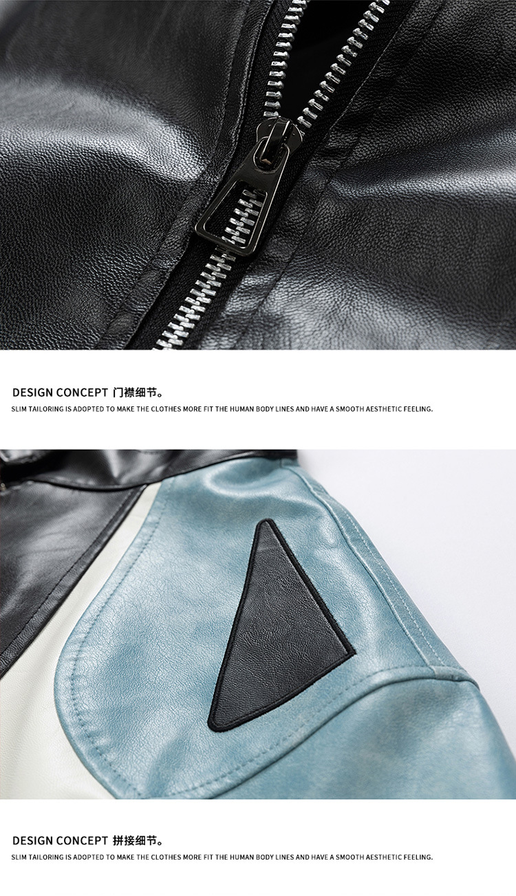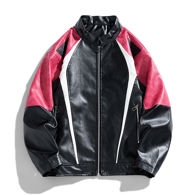 가죽 자켓 남자 2024 봄과 가을 새로운 미국 하이 스트리트 스티칭 대조 컬러 퍼피 핸섬 느슨한 오토바이 PU 가죽 자켓