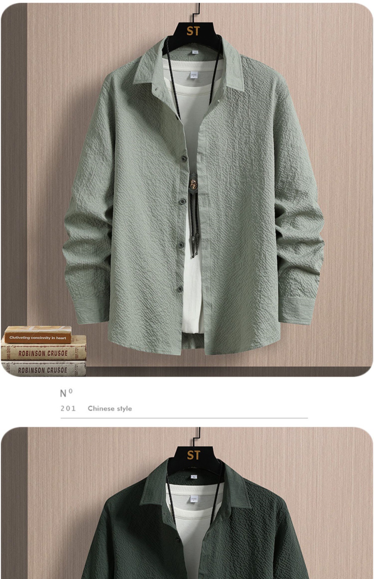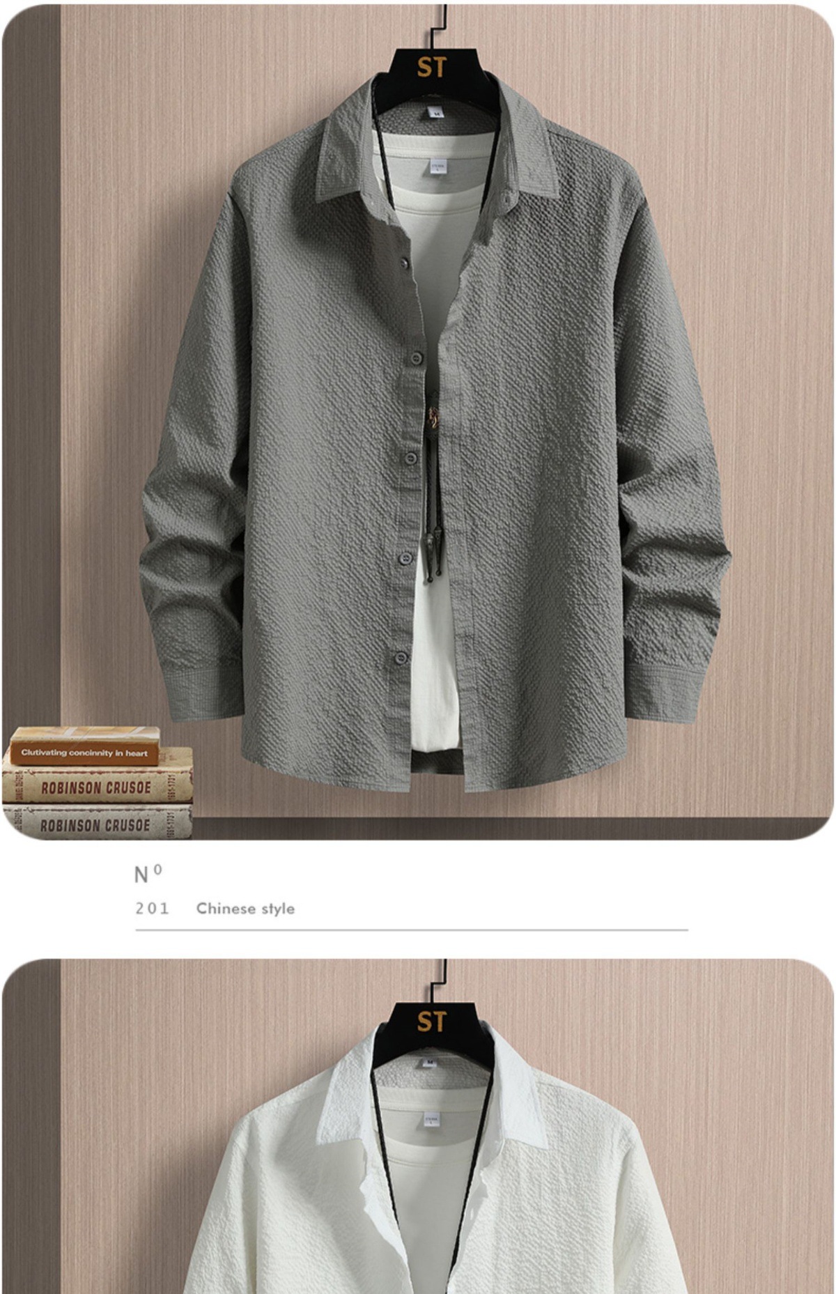 긴 소매 셔츠 남자의 봄과 여름 얇은 느슨한 옷깃 캐주얼 재킷 남자의 여름 유행 브랜드 루피안 쿨 셔츠스토어 가기