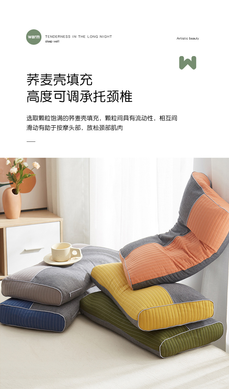 일본식 인쇄되지 않은 3 차원 니트 코튼 메밀 베개 땀 흡수성 통기성 목 베개 탈착식 및 빨 수있는 색상 매칭