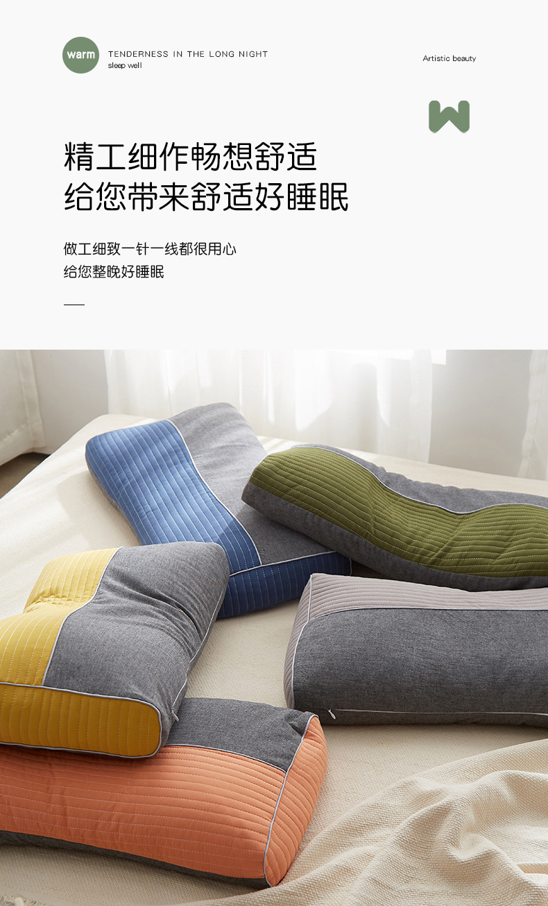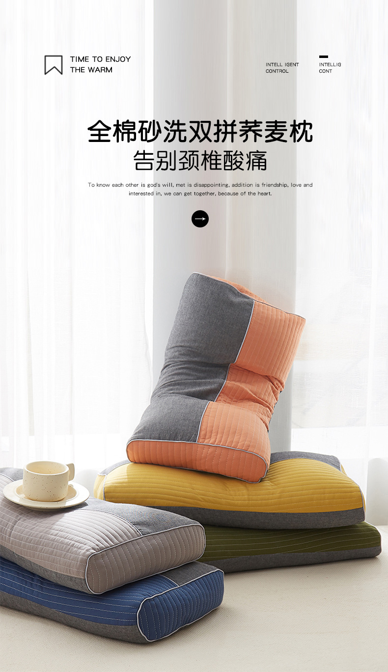 일본식 인쇄되지 않은 3 차원 니트 코튼 메밀 베개 땀 흡수성 통기성 목 베개 탈착식 및 빨 수있는 색상 매칭스토어 가기