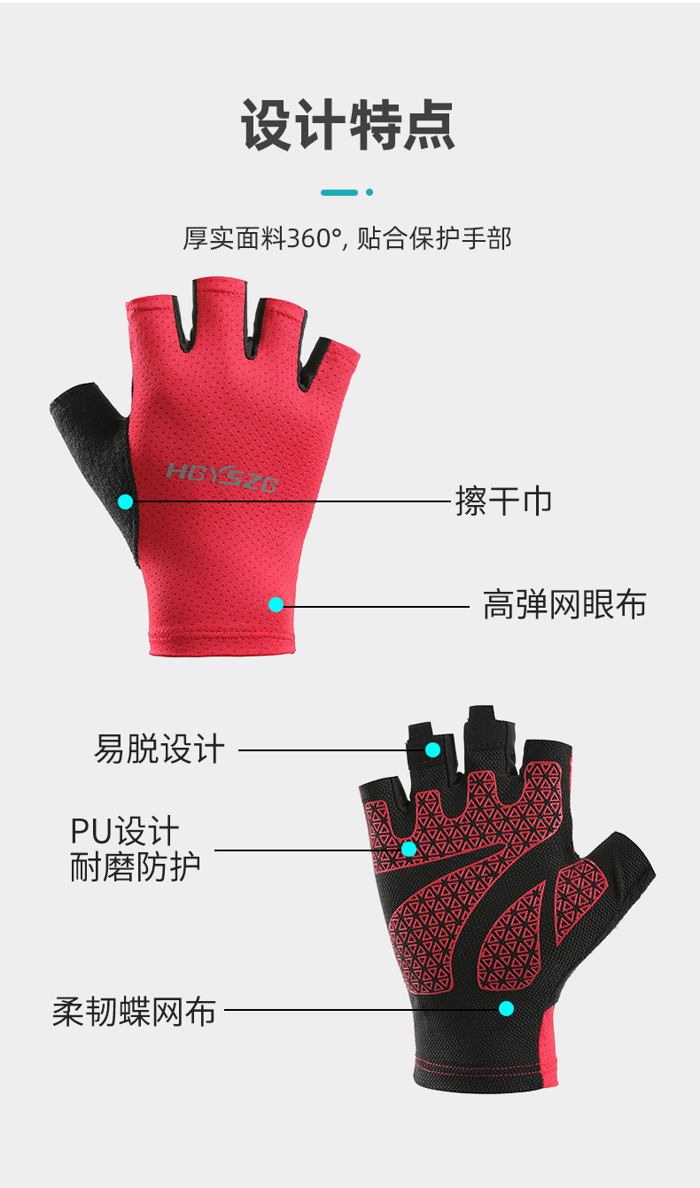 남성용 및 여성용 피트니스 장갑, 미끄럼 방지 손목 보호대, 바벨 사이클링 스포츠 장비, 반손가락 속건 장갑, 대외 무역