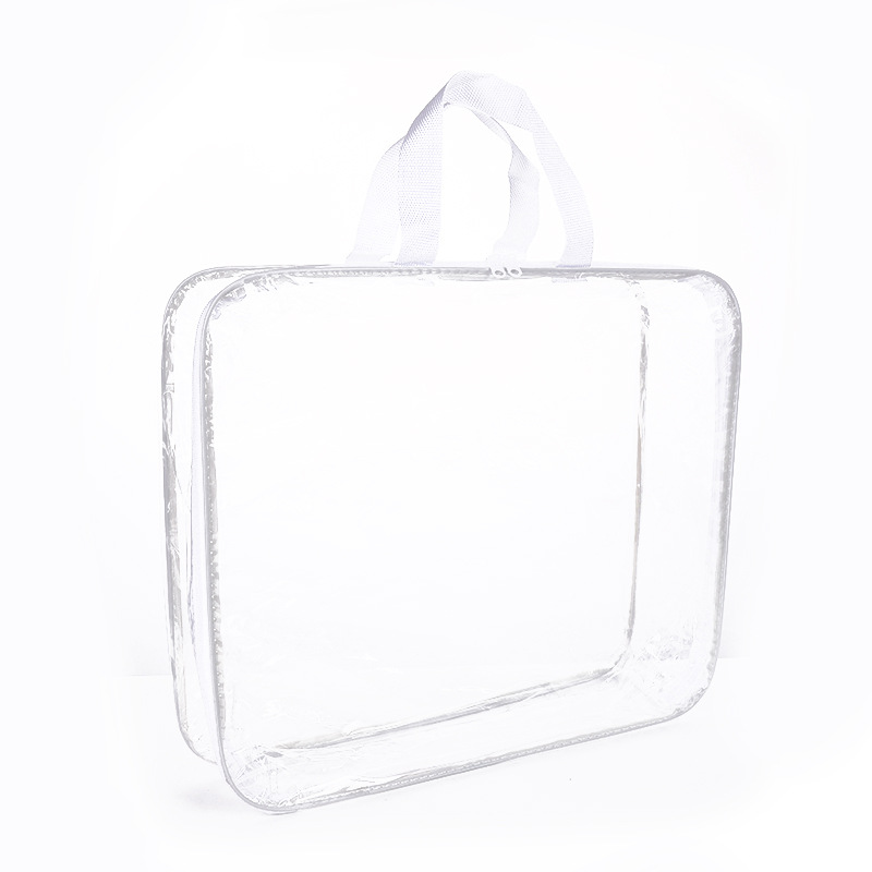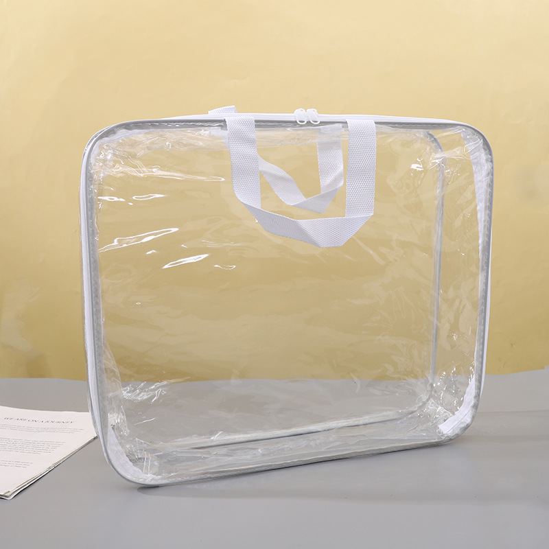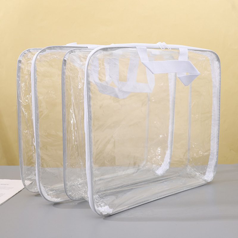 공장 재고 투명 pvc 퀼트 저장 가방 스틸 와이어 가방 홈 섬유 4 피스 세트 스틸 와이어 투명 지퍼 가방스토어 가기